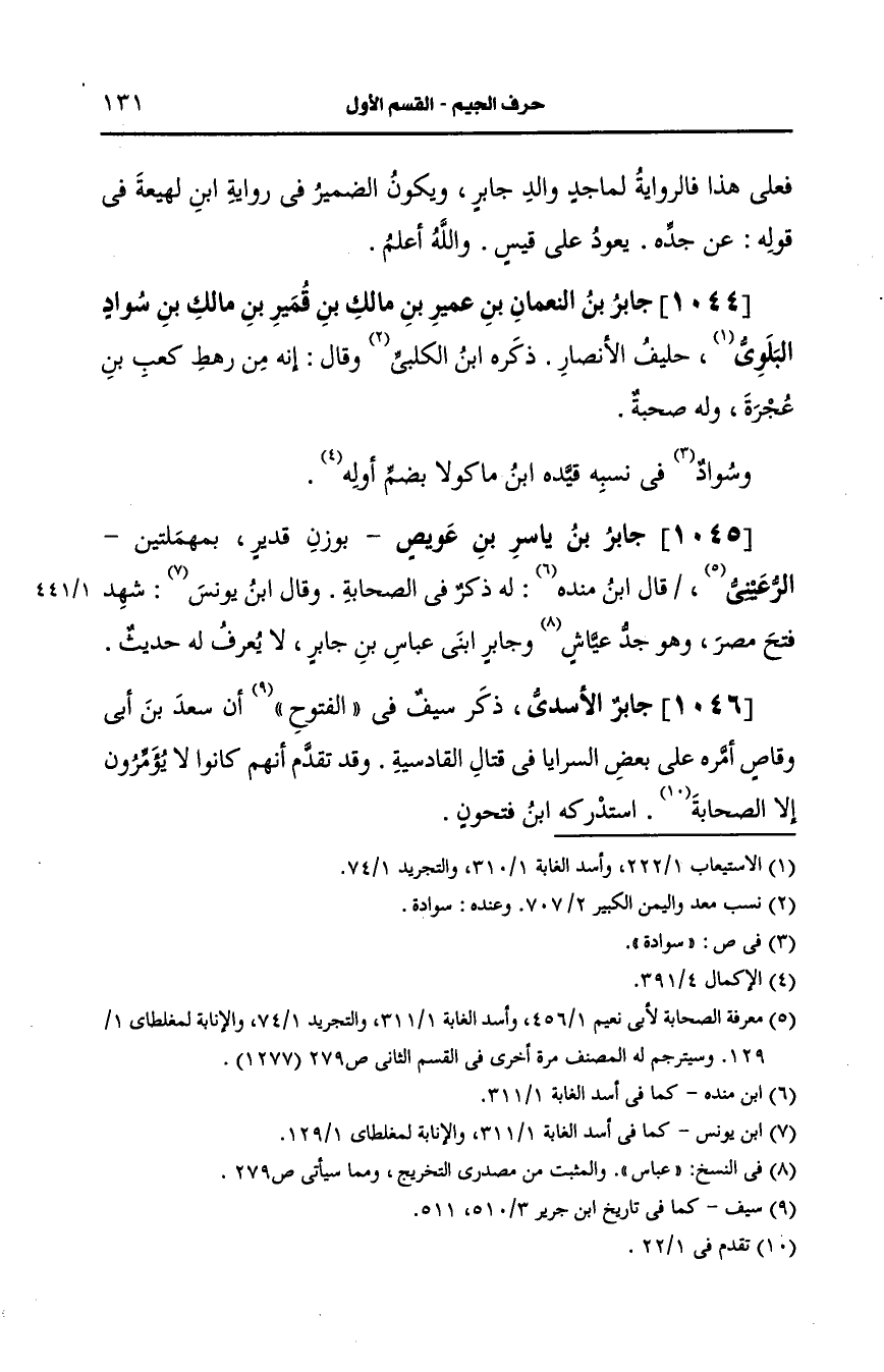 1045- جابر بن ياسر بن عويص بوزن قدير بمهملتين الرعيني.