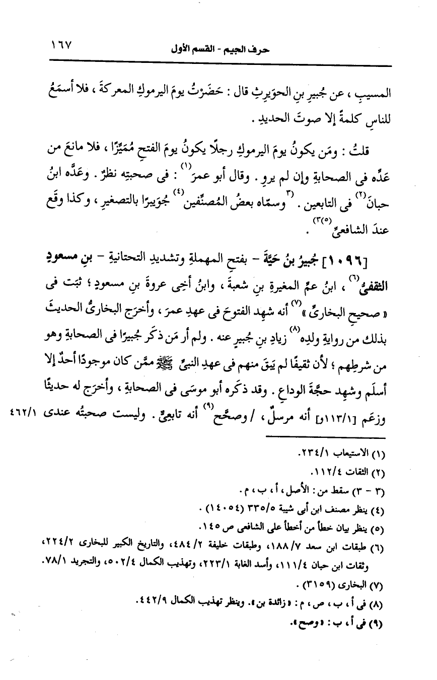 1096- جبير بن حية بفتح المهملة وتشديد التحتانية بن مسعود الثَّقفي، ابن عم المغيرة بن شعبة، وابن أخي عُروَة بن مسعود.