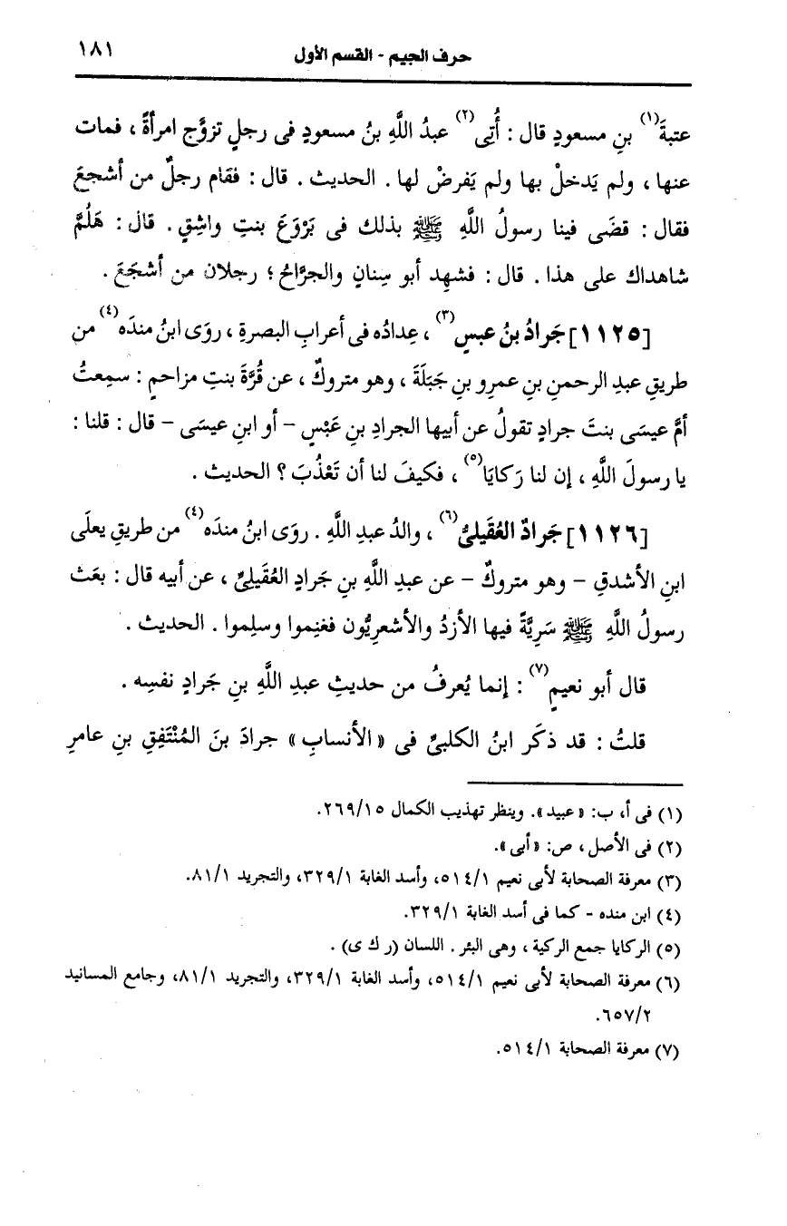 روى ابن مَنْدَه من طريق يعلى بن الأشدق وهو مبروك، عَن عَبد الله بن جراد العقيلي، عَن أَبيه قال بعث رسول الله صَلى الله عَلَيه وسَلم سرية فيها الأزد والأشعريون فغنموا وسلموا الحديث قال أَبو نعيم إنما يعرف من حديث عَبد الله بن جراد نفسه.