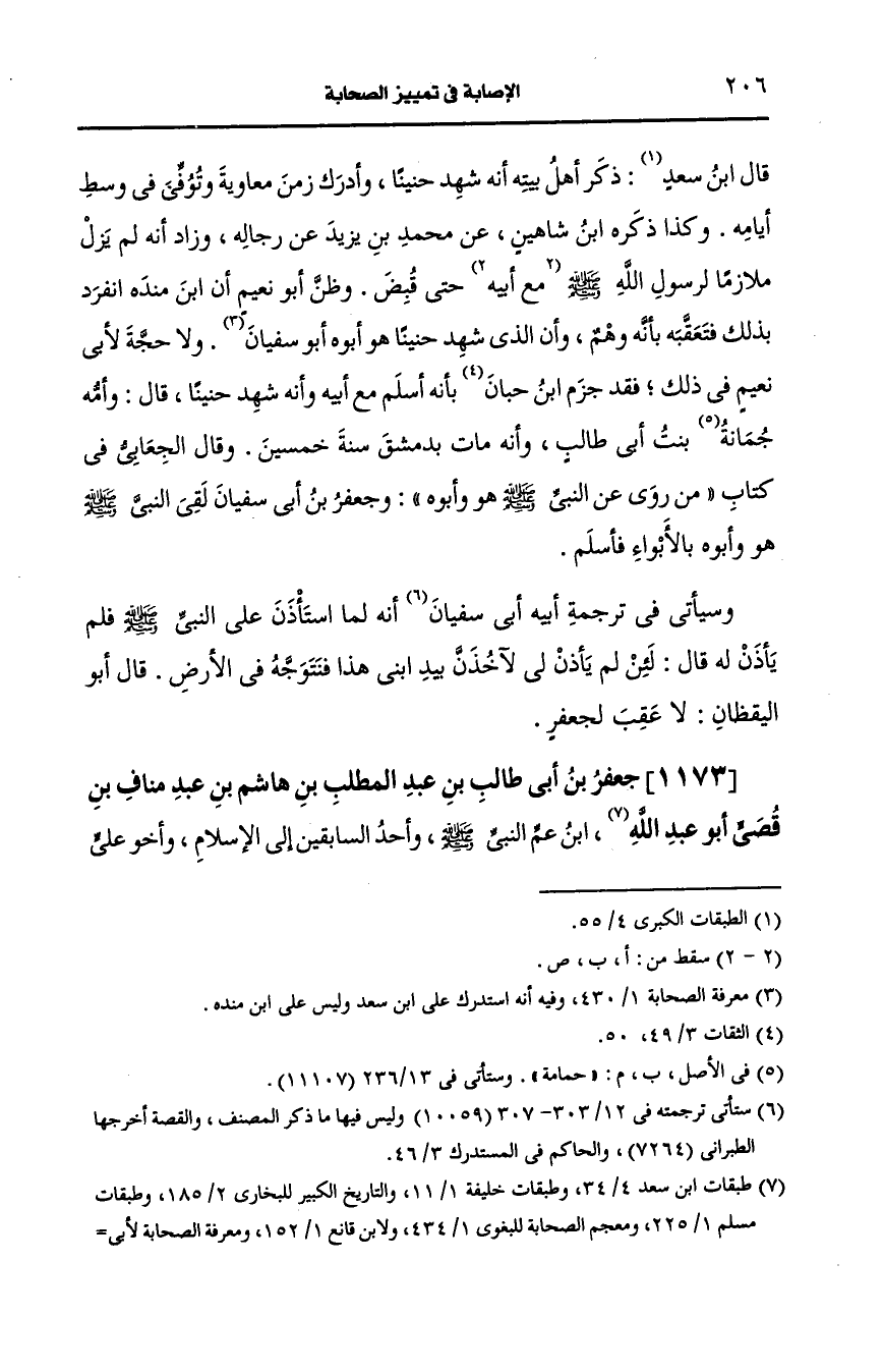 1173- جعفر بن أبي طالب بن عبد المطلب بن هاشم بن عبد مناف بن قصي أَبو عَبد الله، ابن عم النَّبيّ صَلى الله عَلَيه وسَلم وأحد السابقين إلى الإسلام وأخو علي شقيقه.