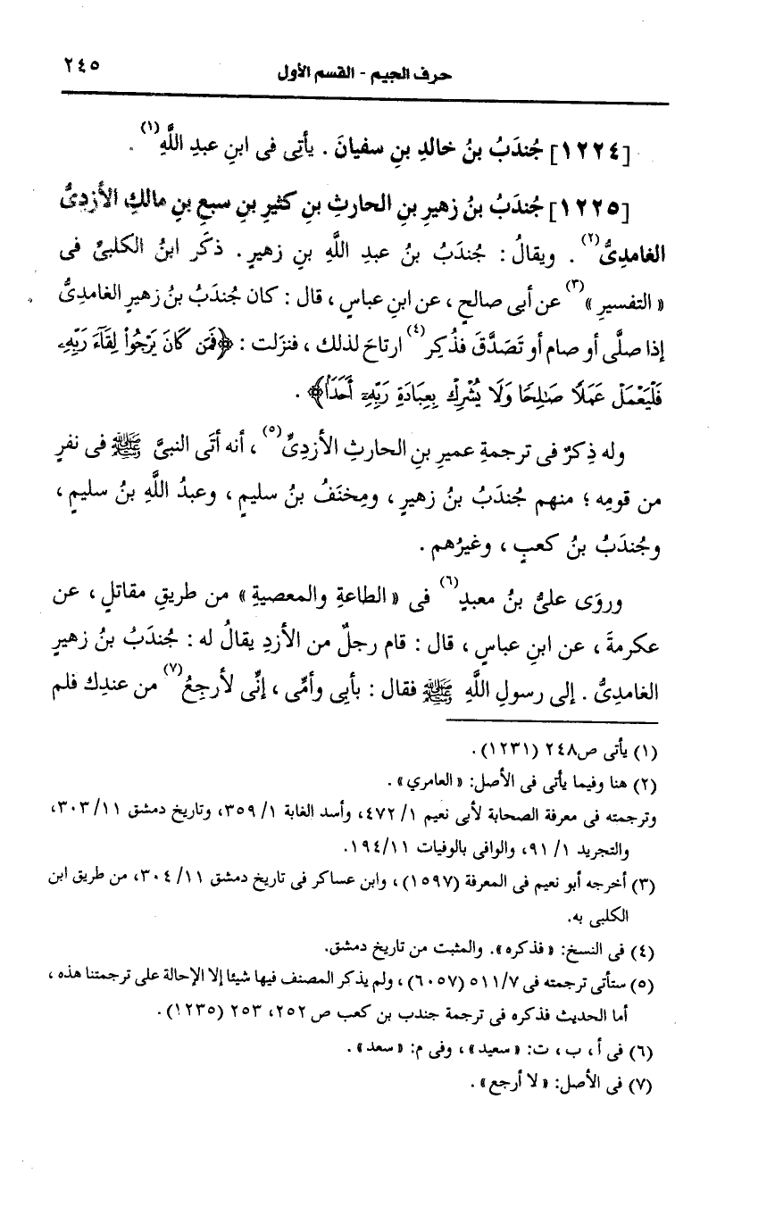 1225- جُندَُب بن زهير بن الحارث بن كثير بن سبع بن مالك الأزدي الغامدي، ويُقال: جُندَُب بن عَبد الله بن زهير الغامدي.