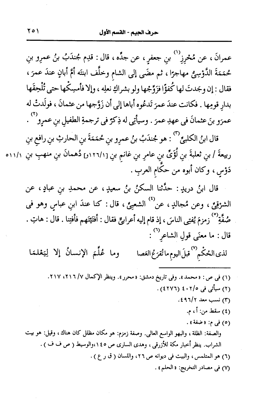 قال ابن دريد، حَدَّثنا السكن بن سعيد، عَن محمد بن عباد، عَن الشرقي وعن مجالد الشعبي قال كنا عند بن عباس وهو في ضفة زمزم يفتي الناس إذ قام إليه أعرابي فقال أفتيتهم فأفتنا قال هات قال ما معنى قول الشاعر: