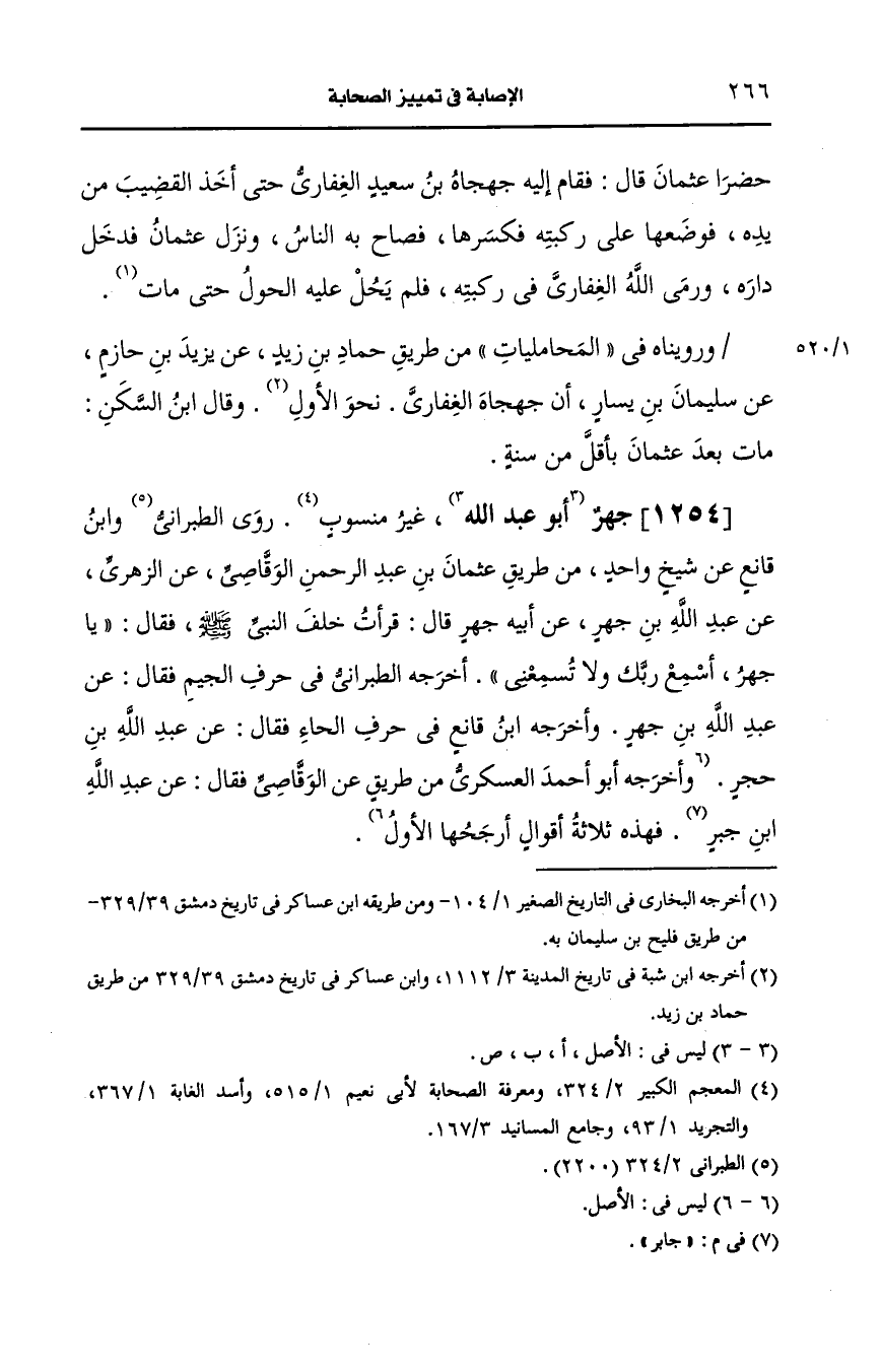 وأَخرجه ابن قانع في حرف الحاء فقال، عَن عَبد الله بن حجر وأَخرجه أَبو أَحمد العسكري من طريق، عَن الوقاصي فقال، عَن عَبد الله بن جابر فهذه ثلاثة أقوال أرجحها الأول.