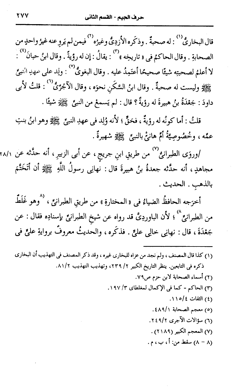 وأورد الطبراني في ترجمة جعدة بن هبيرة غير منسوب حديثا آخر قال فيه ذكر عند النَّبيّ صَلى الله عَلَيه وسَلم عبد لبني عبد المطلب يصلي ولا ينام الحديث وهو مرسل.