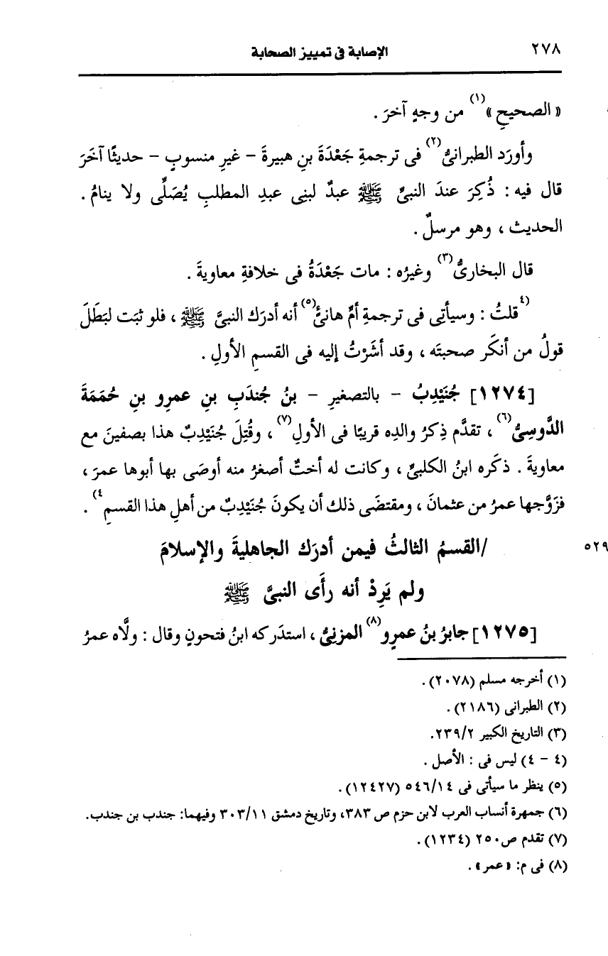 1274- (ز) جنيدب بالتصغير بن جُندَُب بن عَمرو بن حممة الدوسي.