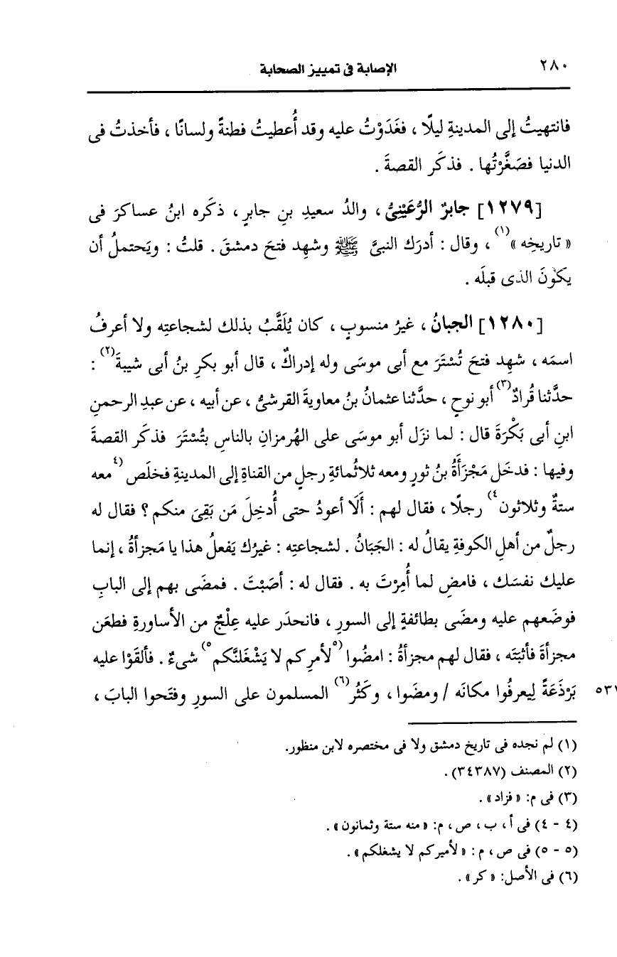 1280- (ز) الجبان غير منسوب كان يلقب بذلك لشجاعته ولا أعرف اسمه شهد فتح تستر مع أبي موسى وله إدراك.