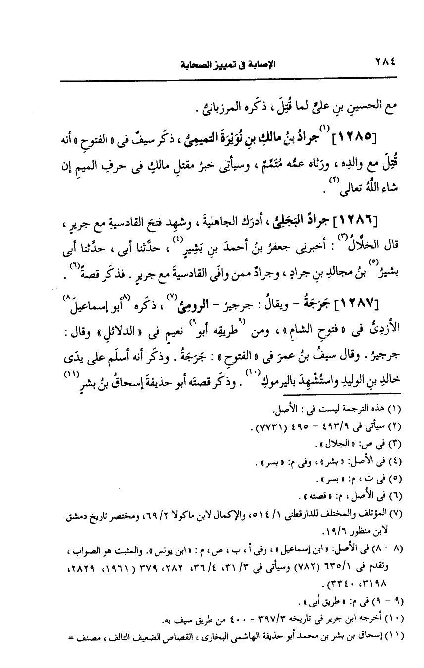 1286- جراد البجلي أدرك الجاهلية وشهد فتح القادسية مع جرير.