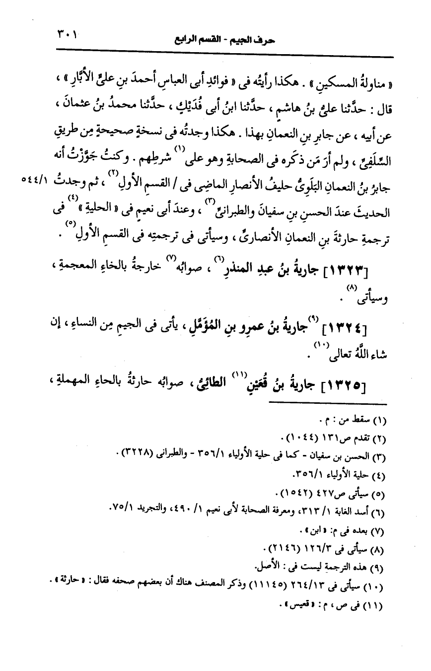 1325- (ز) جارية بن قعيس الطائي صوابه حارثة بالحاء المهملة وسيأتي.