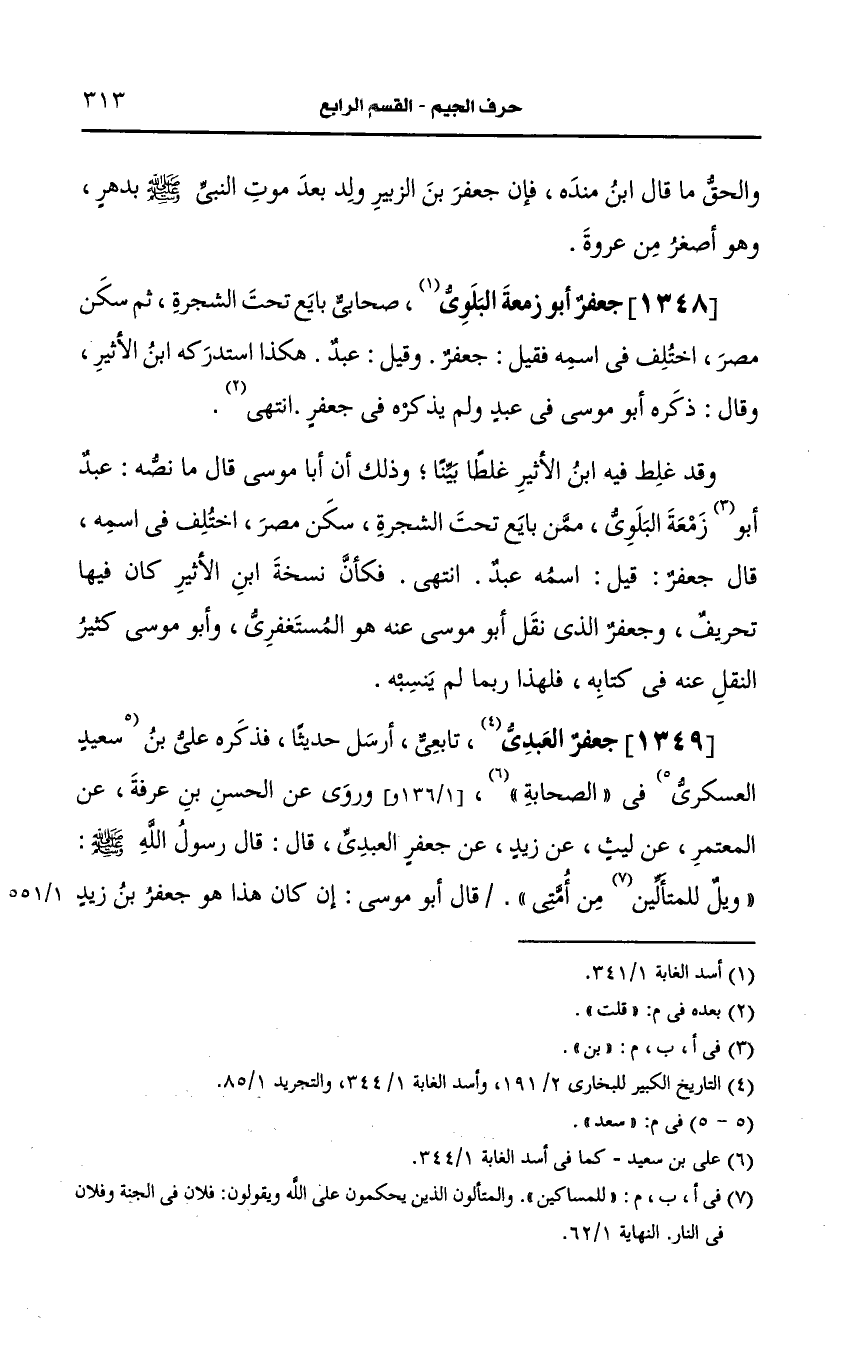 فكأن نسخة ابن الأَثِير كان فيها تحريف وجعفر الذي نقل أَبو موسى عنه هو المستغفري، وأَبو موسى كثير النقل عنه في كتابه فلهذا ربما لم ينسبه.