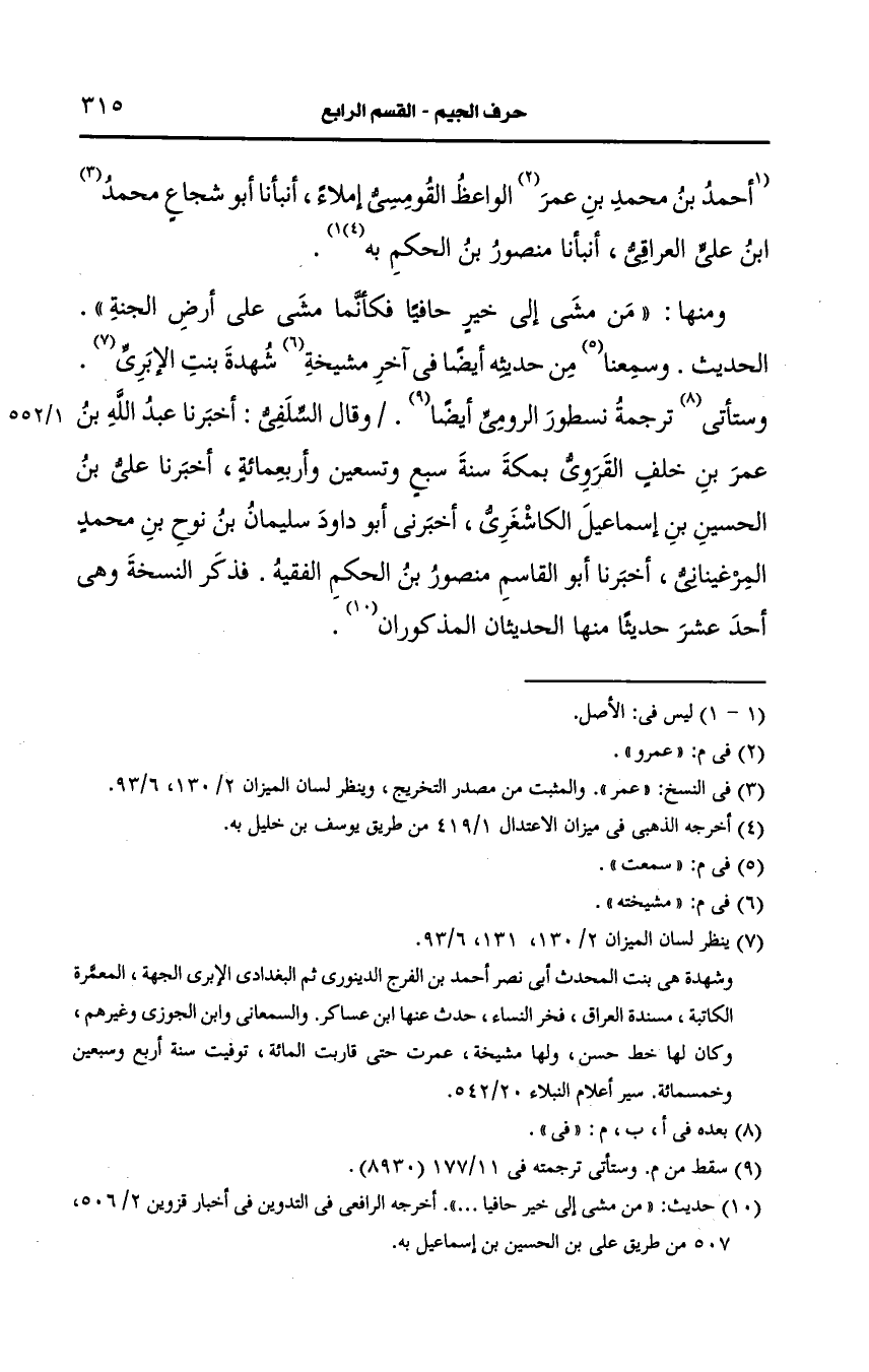 وروى النسخة أيضًا وجاء من طريق أبي المظفر ميمون بن محمود حدثني الشريف عبد الجليل، عَن عمر بن الحسين الكاشغري، عَن ابن نسطور، عَن أَبيه وسيأتي في النون.