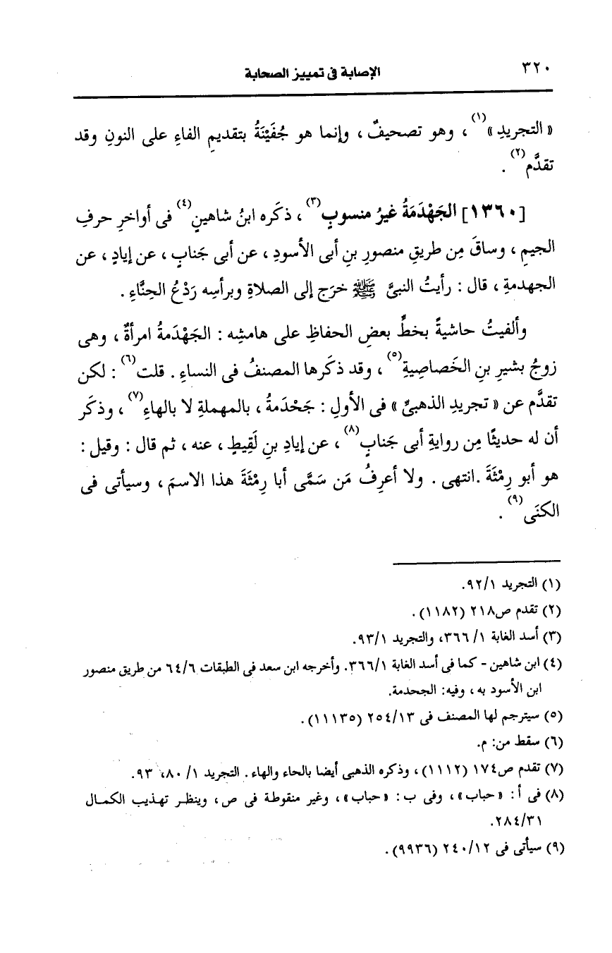 وألفيت حاشيه بخط بعض الحفاظ على هامشه الجهدمة امرأة وهي زوج بشير بن الخصاصية وقد ذكرها المصنف في النساء.