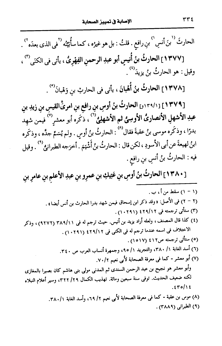 1379- الحارث بن أوس بن رافع بن امرئ القيس بن زيد بن عبد الأشهل، الأَنصارِيّ الأوسي ثم الأشهلي.