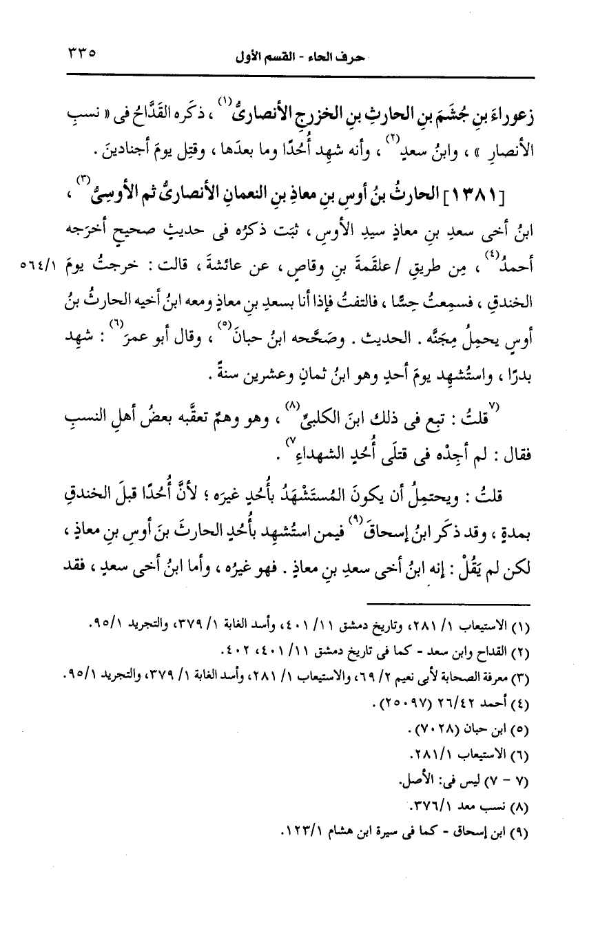 1381- الحارث بن أوس بن معاذ بن النعمان، الأَنصارِيّ ثم الأوسي بن أخي سعد بن معاذ سيد الأوس ثبت.
