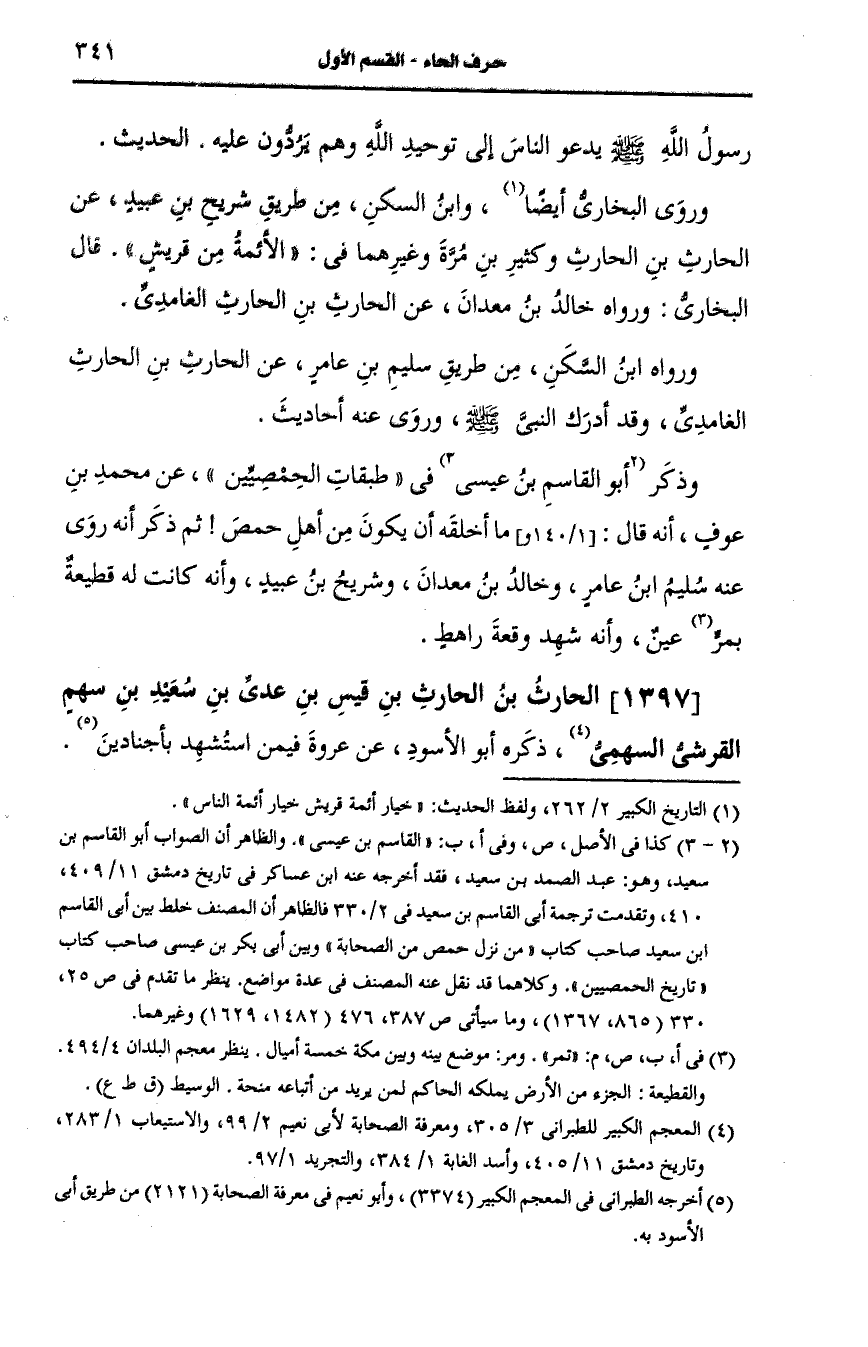 1397- الحارث بن الحارث بن قيس بن عَدِيّ ابن سَعد بن سهم، القُرشِيّ السهمي.