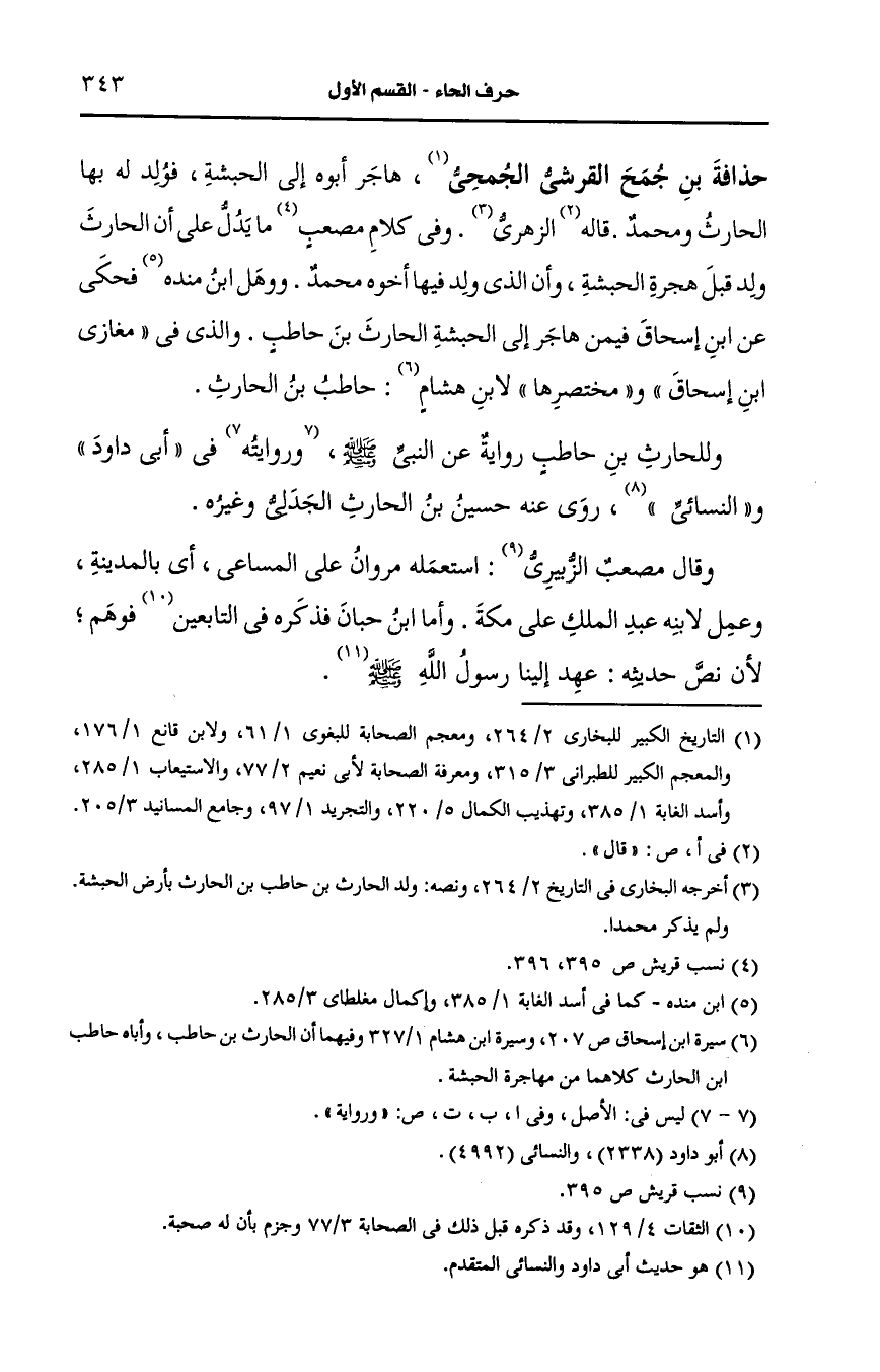وفي كلام مصعب ما يدل على أن الحارث ولد قبل هجرة الحبشة وأن الذي ولد له فيها أخوه محمد. ووهل ابن مَنْدَه فحكى، عَن ابن إسحاق فيمن هاجر إلى الحبشة الحارث بن حاطب.