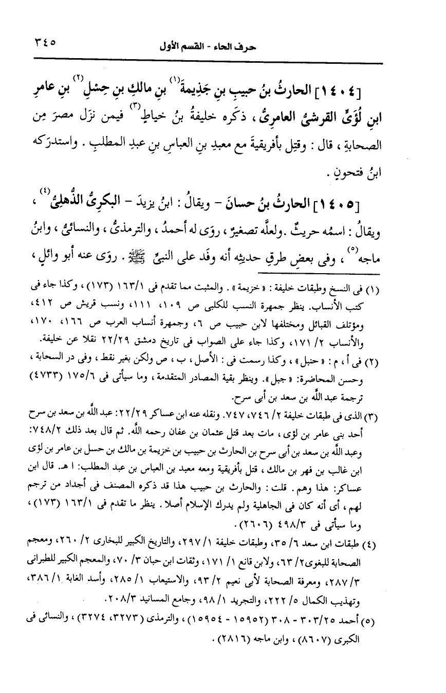1404- (ز) الحارث بن حبيب بن خزيمة بن مالك بن حنبل بن عامر بن لؤي، القُرشِيّ العامري.