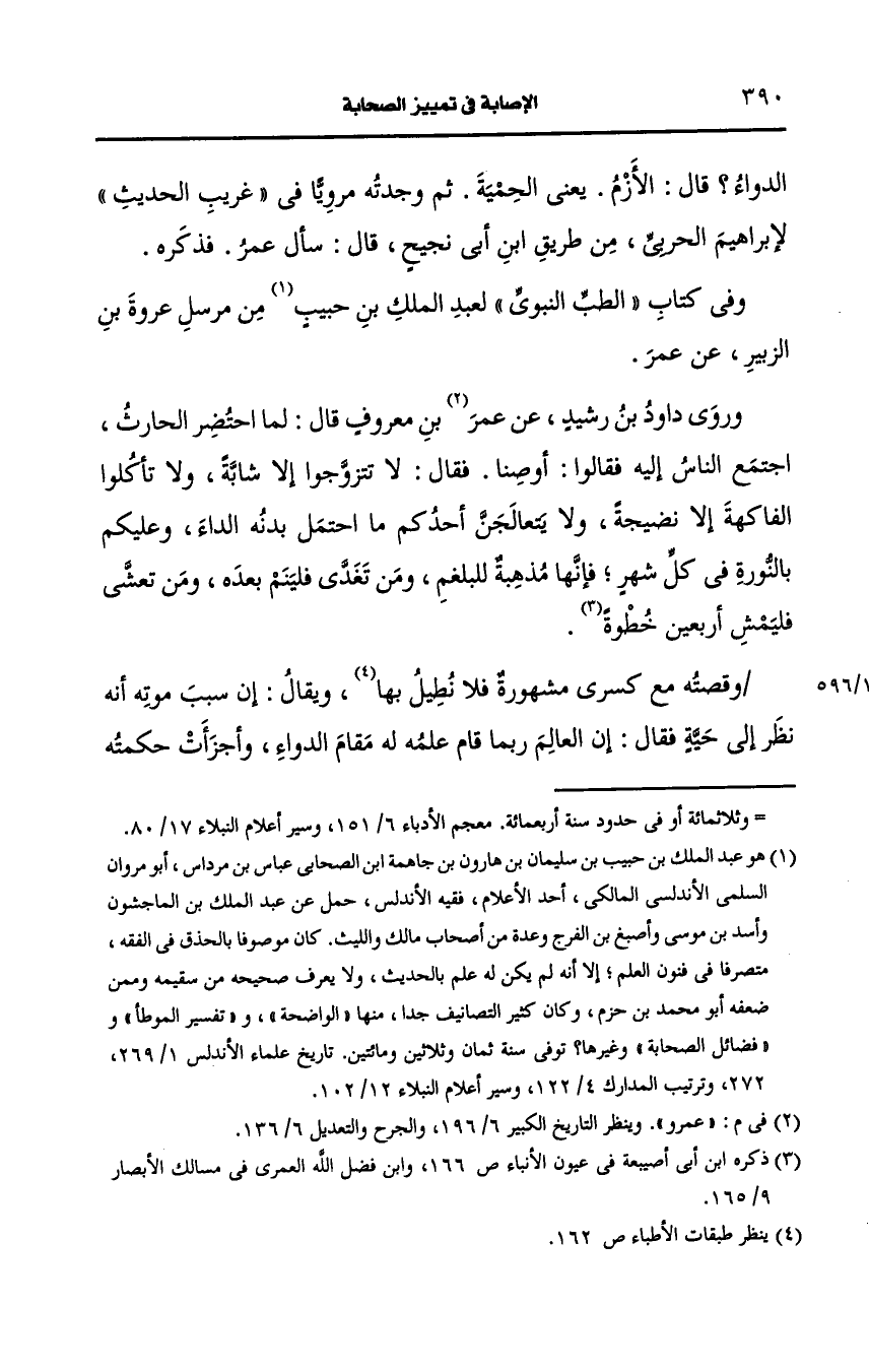 وفي كتاب الطب النبوي لعبد الملك بن حبيب من مرسل عُروَة بن الزبير، عَن عمر.