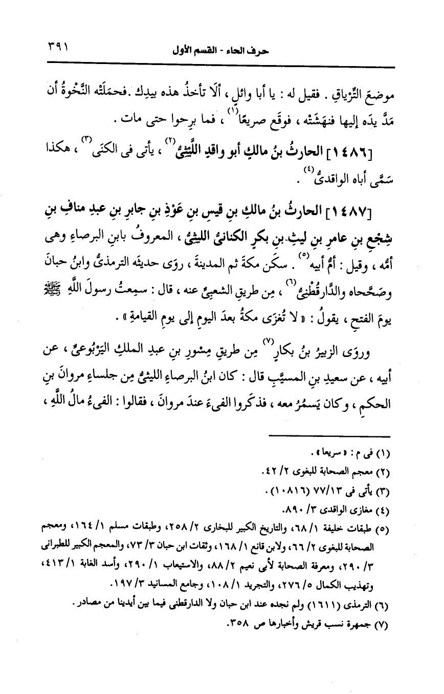 1486- الحارث بن مالك أَبو واقد الليثي.