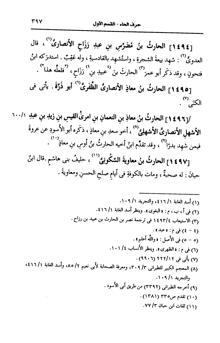 1496- الحارث بن معاذ بن النعمان بن امرئ القيس بن زيد بن عبد الأشهل، الأَنصارِيّ الأشهلي أخو سعد بن معاذ.