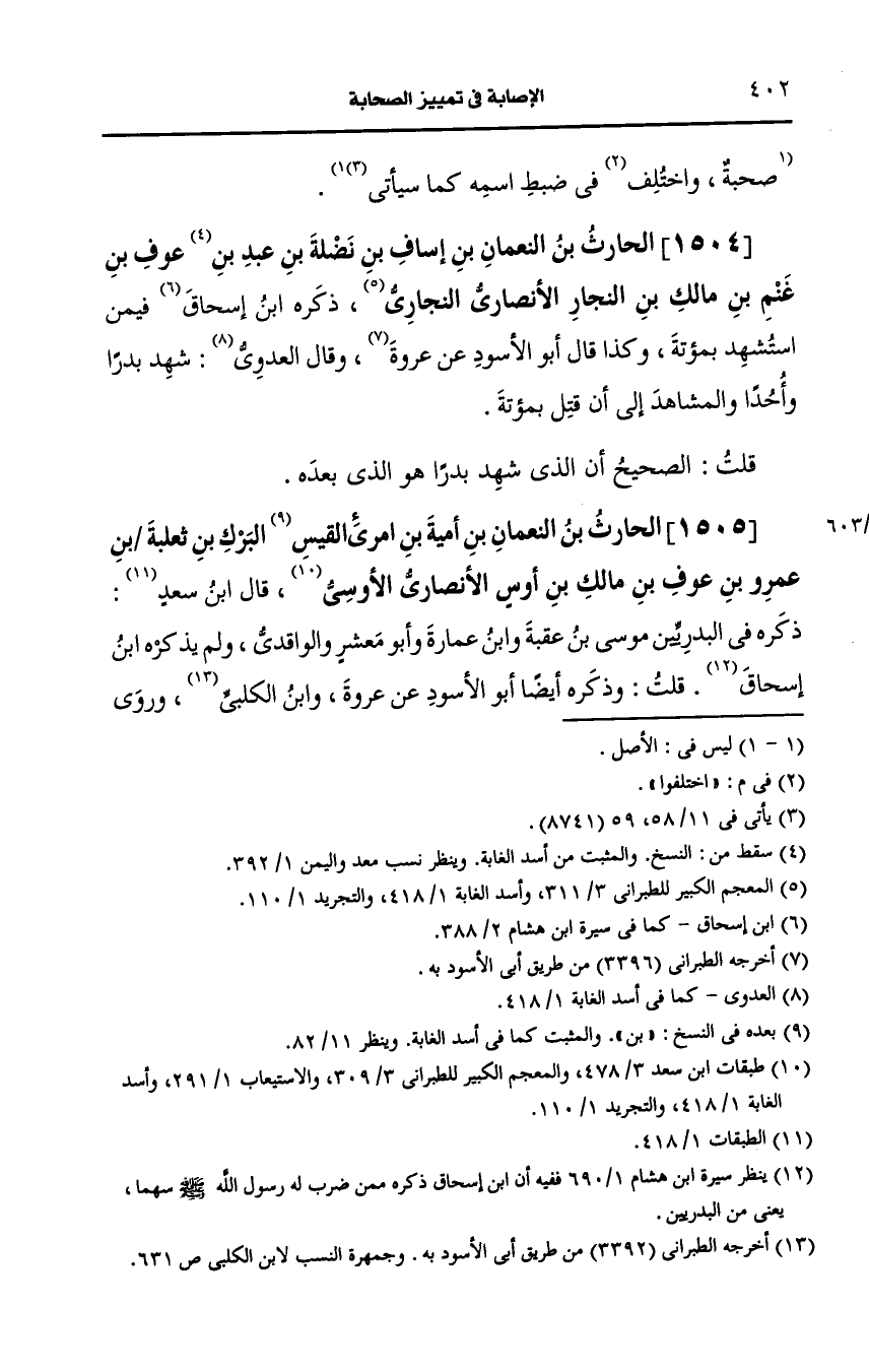 1505- الحارث بن النعمان بن أُمَيَّة بن امرئ القيس بن البرك بن ثعلبة بن عَمرو بن عوف بن مالك بن أوس، الأَنصارِيّ الأوسي.