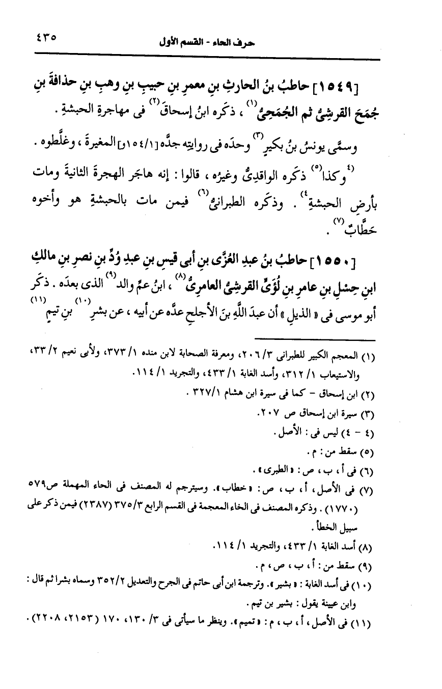 1550- حاطب بن عبد العزى بن أبي قيس بن عبد ود بن نصر بن مالك بن حسل بن عامر بن لؤي، القُرشِيّ العامري، ابن عم الذي بعده.
