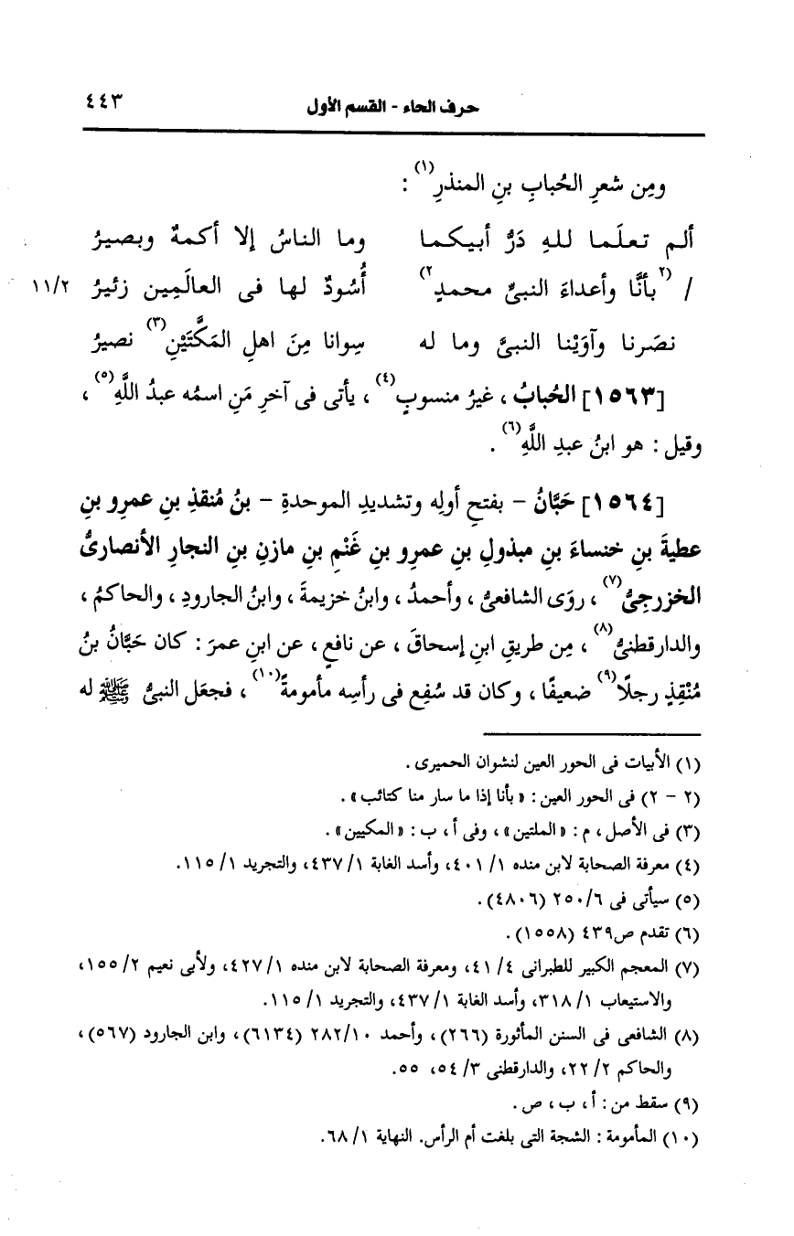 1564- (ز) حبان بفتح أوله وتشديد الموحدة بن منقذ بن عَمرو بن عطية بن خنساء بن مبذول بن عَمرو بن غنم بن مازن بن النجار، الأَنصارِيّ الخزرجي.