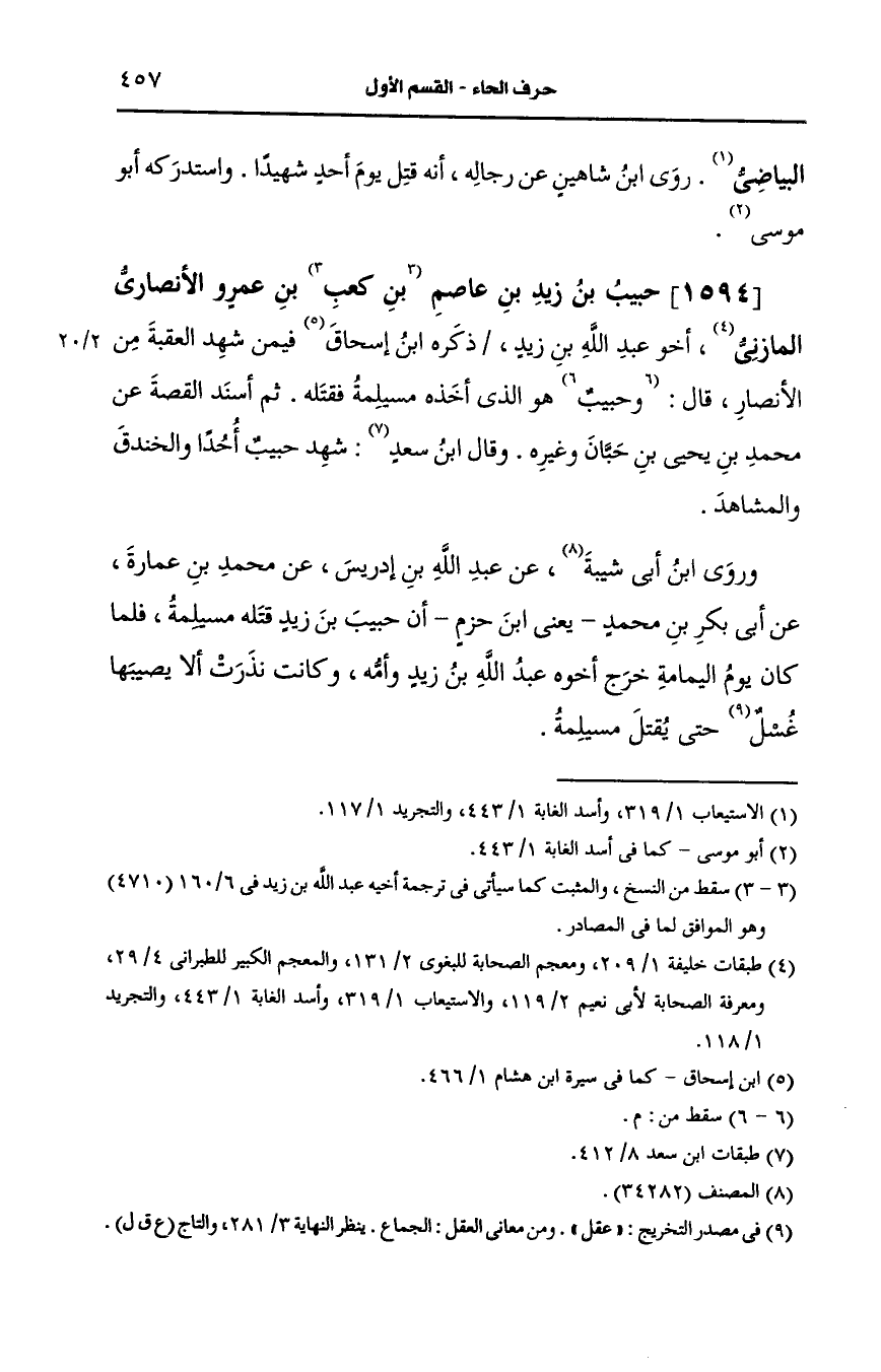 1594- حبيب بن زيد بن عاصم بن عَمرو، الأَنصارِيّ المازني أخو عَبد الله بن زيد.