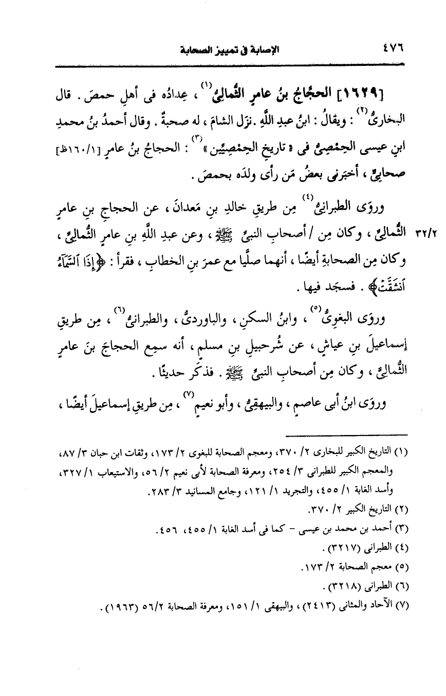 1629- الحجاج بن عامر الثمالي عداده في أهل حمص.