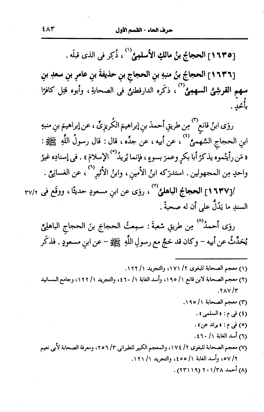 1636- الحجاج بن منبه بن الحجاج بن حذيفة بن عامر ابن سَعد بن سهم، القُرشِيّ السهمي.