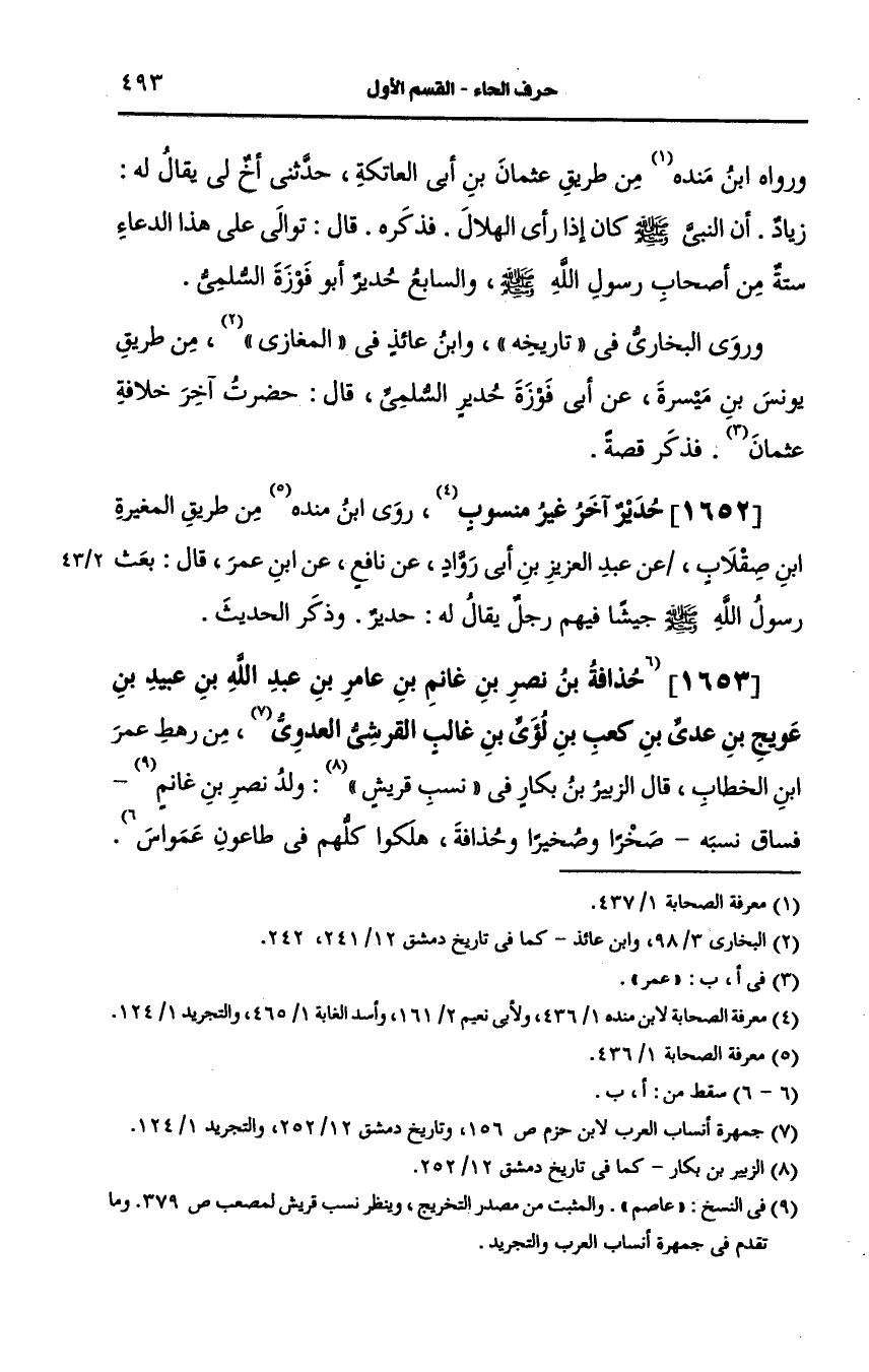 1653- حذافة بن نصر بن غانم بن عامر بن عَبد الله بن عبيد بن عويج بن عَدِيّ بن كعب بن لؤي بن غالب، القُرشِيّ العدوي من رهط عمر بن الخطاب.