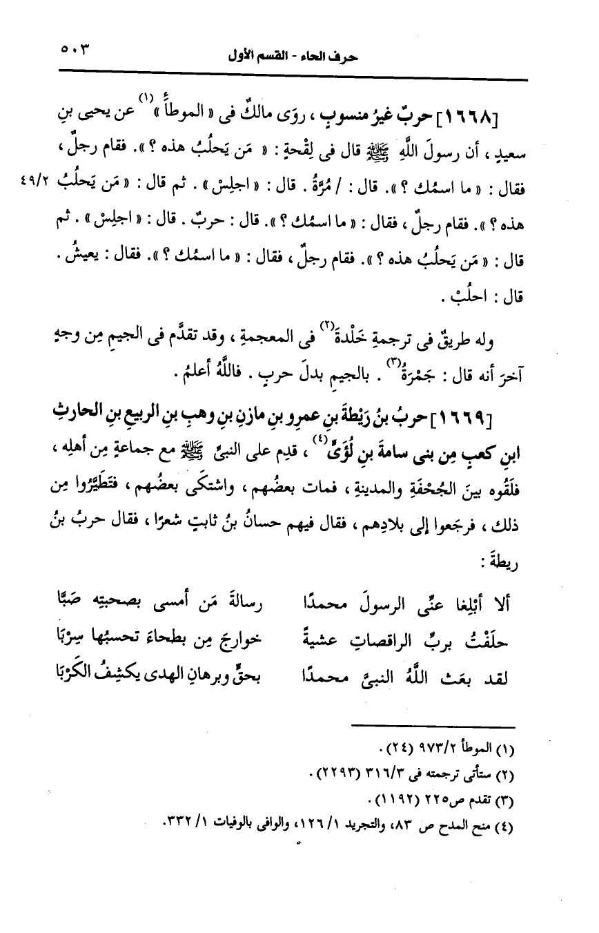 1669- حرب بن ريطة بن عَمرو بن مازن بن وهب بن الربيع بن الحارث بن كعب من بني سامة بن لؤي.