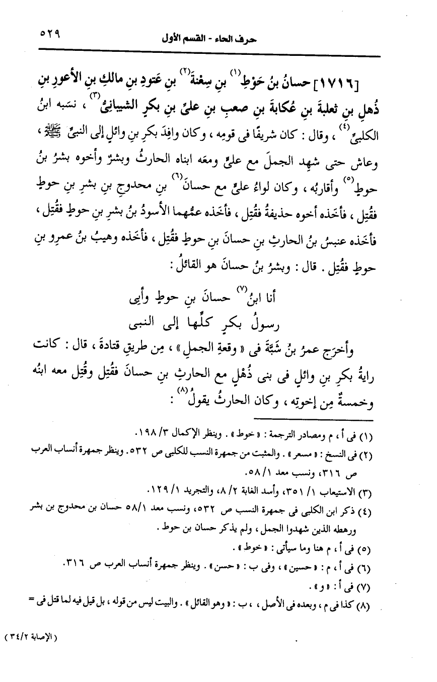 1716- حسان بن خوط بن مسعر بن عتود بن مالك بن الأعور بن ذهل بن ثعلبة بن عكابة بن صعب بن علي بن بكر الشيباني.