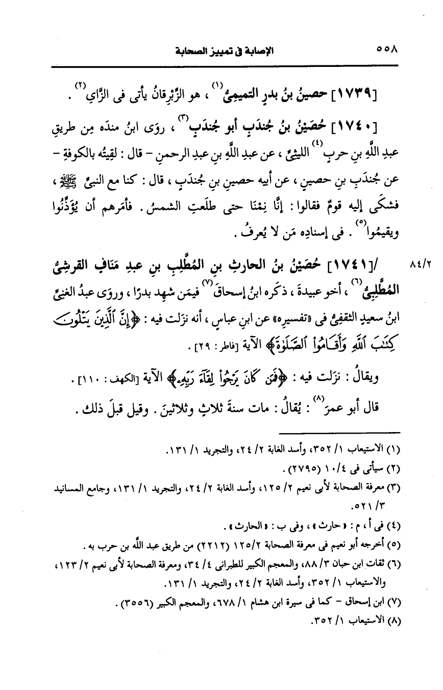 1741- حصين بن الحارث بن المطلب بن عبد مناف، القُرشِيّ المطلبي أخو عبيدة.