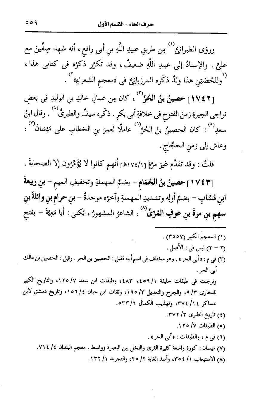 1742- حصين بن أبي الحر كان من عمال خالد بن الوليد في بعض نواحي الحيرة زمن الفتوح في خلافة أبي بكر.