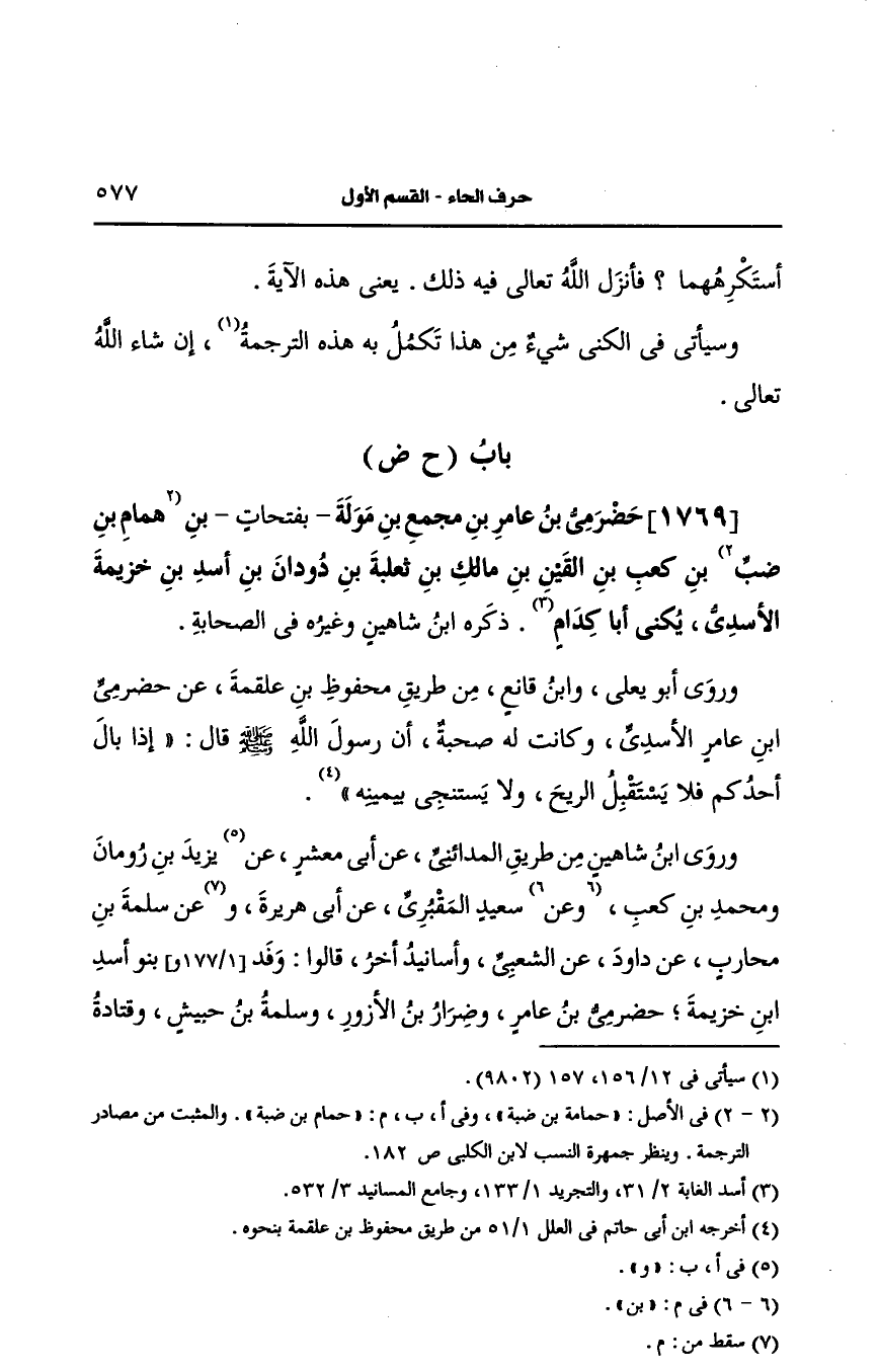 1769- حضرمي بن عامر بن مجمع بن مولة بفتحات بن حمام بن ضبة بن كعب بن القين بن مالك بن ثعلبة بن دودان بن أسد بن خزيمة الأسدي، يُكنى أَبا كدم.