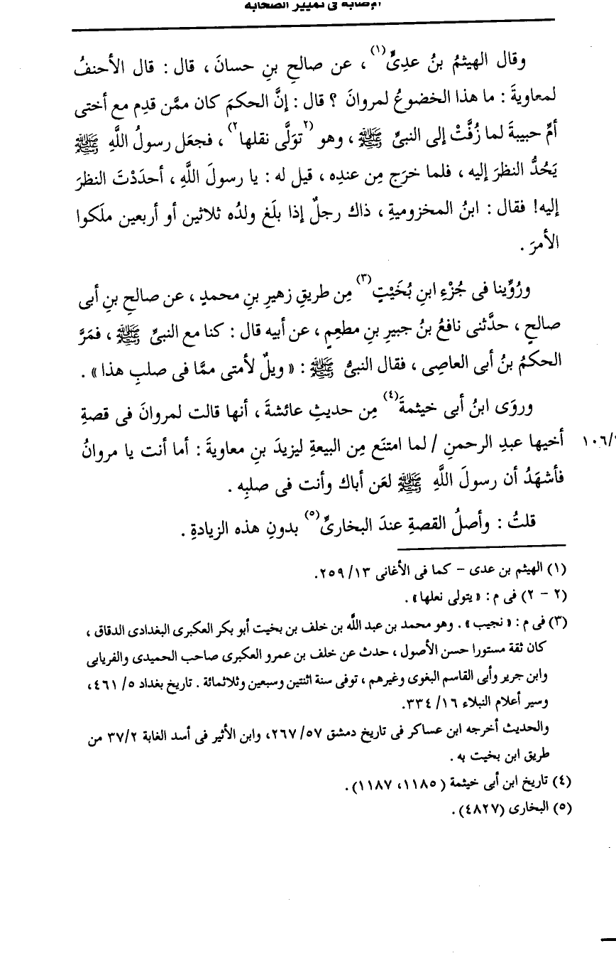 وروينا في جزء بن نجيب من طريق زهير بن محمد، عَن صالح بن أبي صالح حدثني نافع بن جبير بن مطعم، عَن أَبيه قال كنا مع النَّبيّ صَلى الله عَلَيه وسَلم فمر الحكم بن أبي العاص فقال النَّبيّ صَلى الله عَلَيه وسَلم ويل لأمتي مما في صلب هذا.