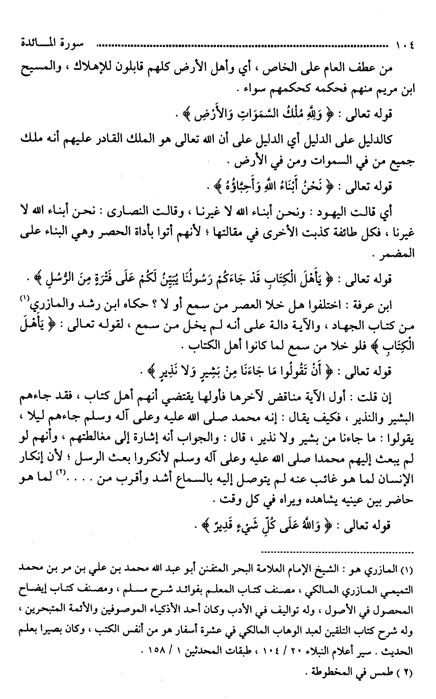 ابن عرفة: اختلفوا هل خلا العصر من سمْعٍ أو لَا؟ حكاه ابن رشد والمازري من كتاب الجهاد، والآية دالة على أنه لم يخل من سمع، لقوله تعالى: (يَا أَهْلَ الْكِتَابِ) فلو خلا من سمع لما كانوا أهل الكتاب.