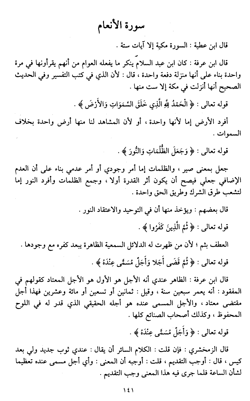 قوله تعالى: (وَجَعَلَ الظُّلُمَاتِ وَالنُّورَ).