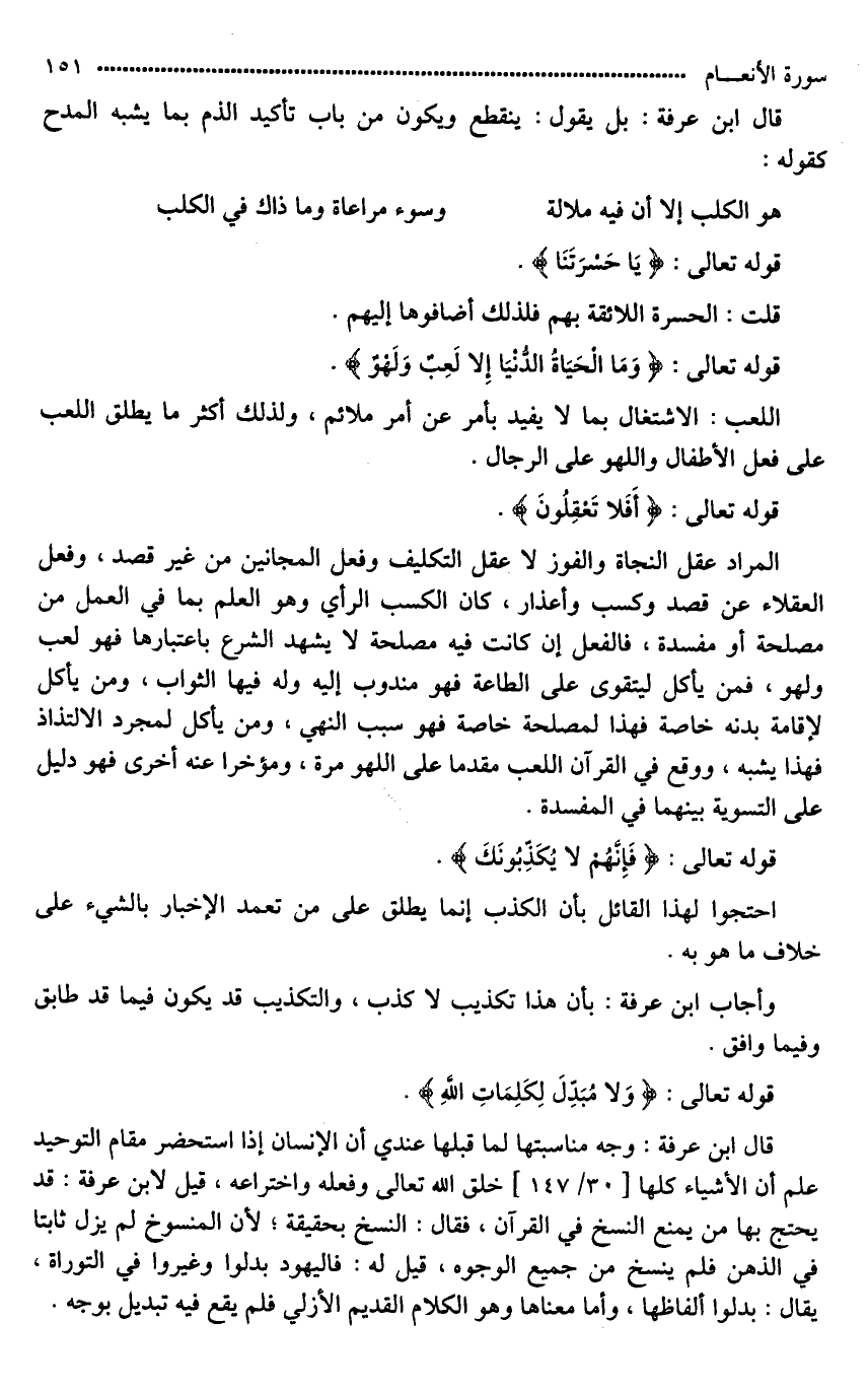 قال ابن عرفة: وجه مناسبتها لما قبلها عندي أن الإنسان إذا استحضر مقام التوحيد علم أن الأشياء كلها خلق الله تعالى وفعله واختراعه، قيل لابن عرفة: قد يحتج بها من يمنع النسخ في القرآن، فقال: النسخ بحقيقة؛ لأن المنسوخ لم يزل ثابتا في الذهن فلم ينسخ من جميع الوجوه، قيل له: فاليهود بدلوا وغيروا في التوراة، يقال: بدلوا ألفاظها، وأما معناها وهو الكلام القديم الأزلي فلم يقع فيه تبديل بوجه.