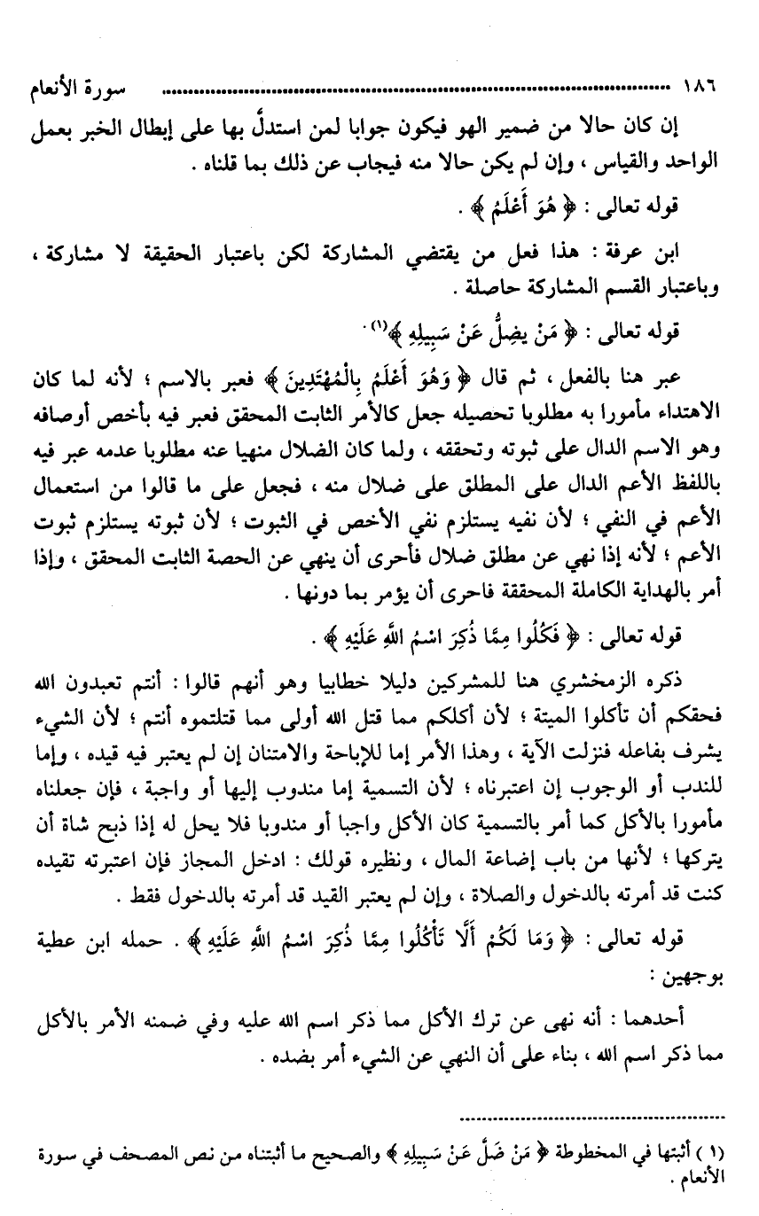 قوله تعالى: {وَمَا لَكُمْ أَلَّا تَأْكُلُوا مِمَّا ذُكِرَ اسْمُ اللَّهِ عَلَيْهِ ... (119)}. . حمله ابن عطية