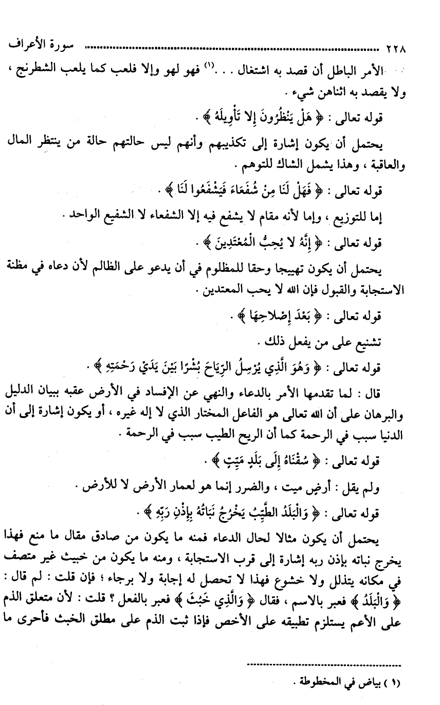 يحتمل أن يكون مثالا لحال الدعاء فمنه ما يكون من صادق مقال ما منع فهذا يخرج نباته بإذن ربه إشارة إلى قرب الاستجابة، ومنه ما يكون من خبيث غير متصف في مكانه يتذلل ولا خشوع فهذا لَا تحصل له إجابة ولا برجاء؛ فإن قلت: لم قال: (وَالْبَلَدُ) فعبر بالاسم، فقال (وَالَّذِي خَبُثَ) فعبر بالفعل؟ قلت: لأن متعلق الذم على الأعم يستلزم تطبيقه على الأخص فإِذا ثبت الذم على مطلق الخبث فأحرى ما