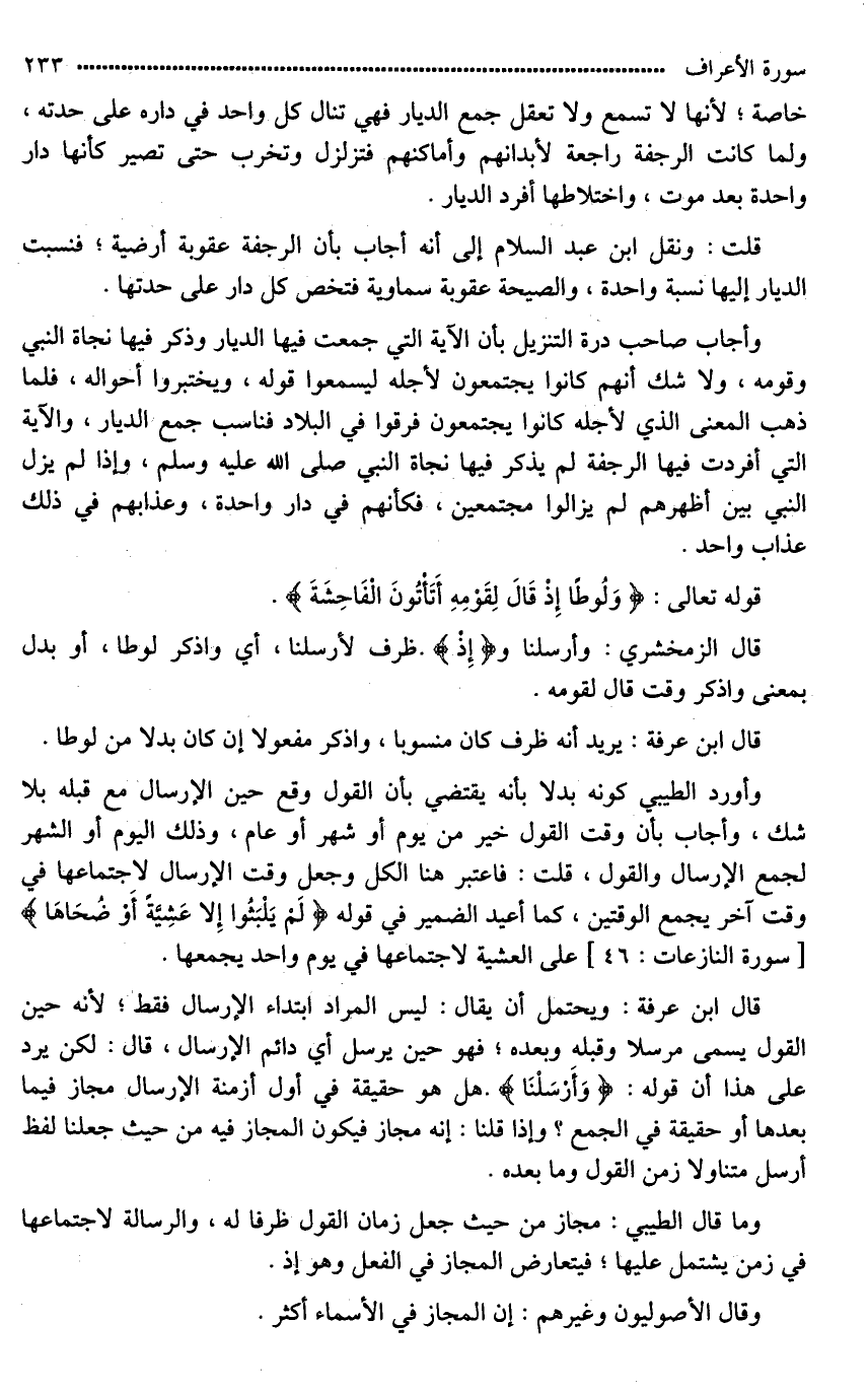 قال ابن عرفة: يريد أنه ظرف كان منسوبا، واذكر مفعولا إن كان بدلا من لوطا. وأورد الطيبي كونه بدلا بأنه يقتضي بأن القول وقع حين الإرسال مع قبله بلا شك، وأجاب بأن وقت القول خير من يوم أو شهر أو عام، وذلك اليوم أو الشهر لجمع الإرسال والقول، قلت: فاعتبر هنا الكل وجعل وقت الإرسال لاجتماعها في وقت آخر يجمع الوقتين، كما أعيد الضمير في قوله (لَمْ يَلْبَثُوا إِلَّا عَشِيَّةً أَوْ ضُحَاهَا) على العشية لاجتماعها في يوم واحد يجمعها.