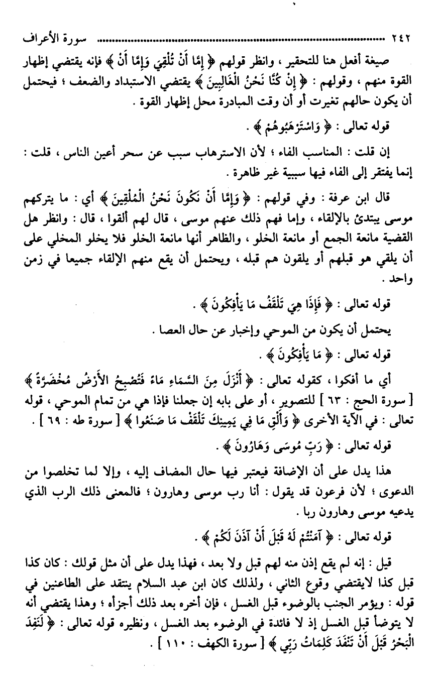 (قَالَ أَلْقُوا فَلَمَّا أَلْقَوْا سَحَرُوا أَعْيُنَ النَّاسِ وَاسْتَرْهَبُوهُمْ وَجَاءُوا بِسِحْرٍ عَظِيمٍ) صيغة أفعل هنا للتحقير، وانظر قولهم (إِمَّا أَنْ تُلْقِيَ وَإِمَّا أَنْ) فإنه يقتضي إظهار القوة منهم، وقولهم: (إِنْ كُنَّا نَحْنُ الْغَالِبِينَ) يقتضي الاستبداد والضعف؛ فيحتمل أن يكون حالهم تغيرت أو أن وقت المبادرة محل إظهار القوة.