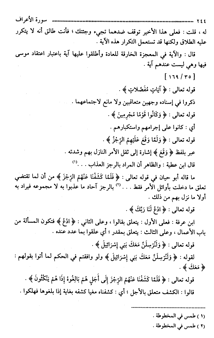 ما قاله أبو حيان في قوله تعالى: (فَلَمَّا كَشَفْنَا عَنْهُمُ الرِّجْزَ) من أن لما تقتضي تعلق ما دخلت بأوائل الأمر فقط [ ... ] [بالرجز آحاد ما عذبوا به لَا مجموعه فيراد به أولا ما نزل بهم من ذلك].