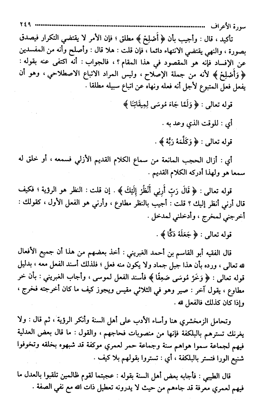 وتحامل الزمخشري هنا وأساء الأدب على أهل السنة وأنكر الرؤية، ثم قال: ولا يغرنك تسترهم بالبلكفة فإنها من منصوبات [أشياخهم *]، والقول: ما قال بعض العدلية فيهم: [لجماعة سموا هواهم سنّة ... وجماعة حمر لعمري موكفه قد شبّهوه بخلقه وتخوّفوا ... شنع الورى فتستّروا بالبلكفه*] أي: تستروا بقولهم بلا كيف.