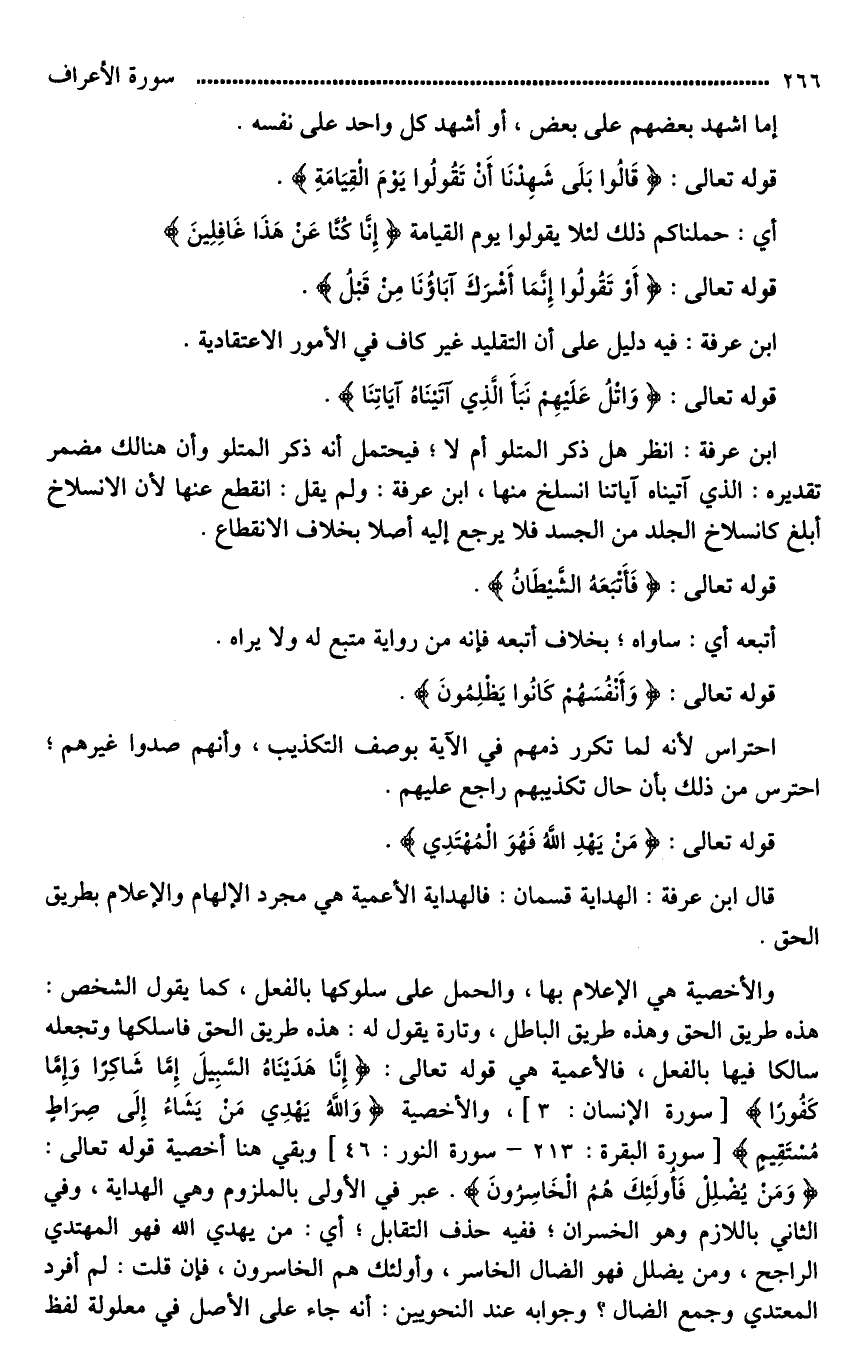 ابن عرفة: فيه دليل على أن التقليد غير كاف في الأمور الاعتقادية.