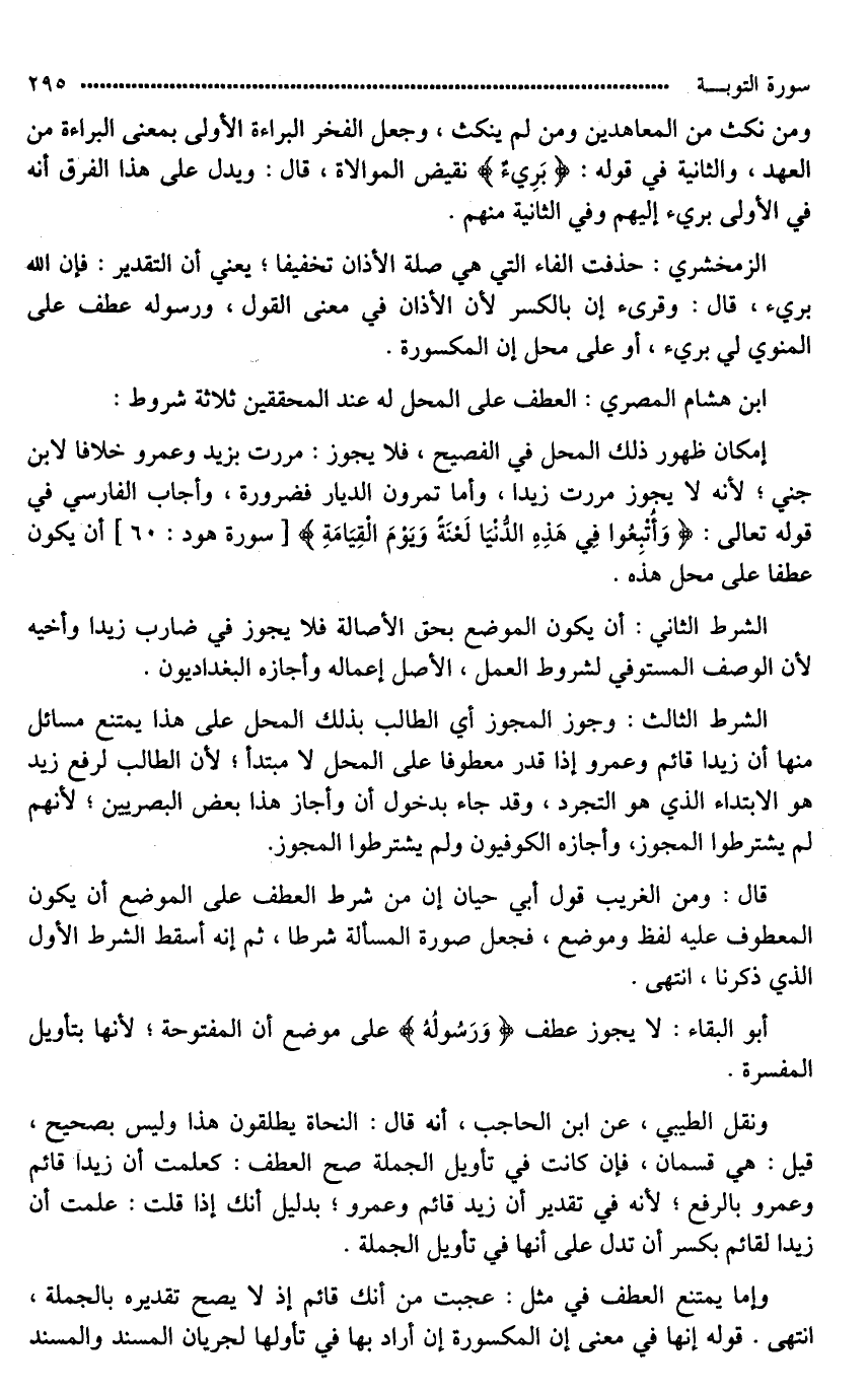 ابن هشام المصري: العطف على المحل له عند المحققين ثلاثة شروط: