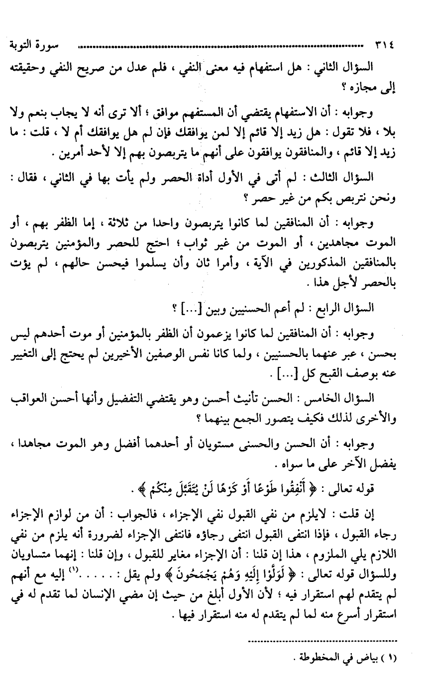السؤال الرابع: [لم وصف حالتي المؤمنين بالحسنيين*]، [وعين حالتي حال المنافقين ولم يصفهما بالسوأتين*].
