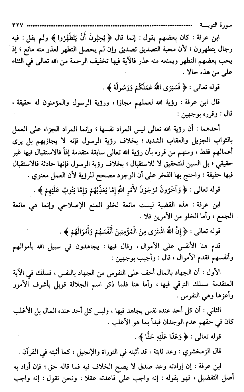 ابن عرفة: إن إرادته وعد صدق لَا يصح الخلاف فيه فما قاله حق؛ فإن أراد به أصل التفضيل، فهو بقوله: إنه واجب على قاعدته عقلا، ونحن نقول: إنه واجب