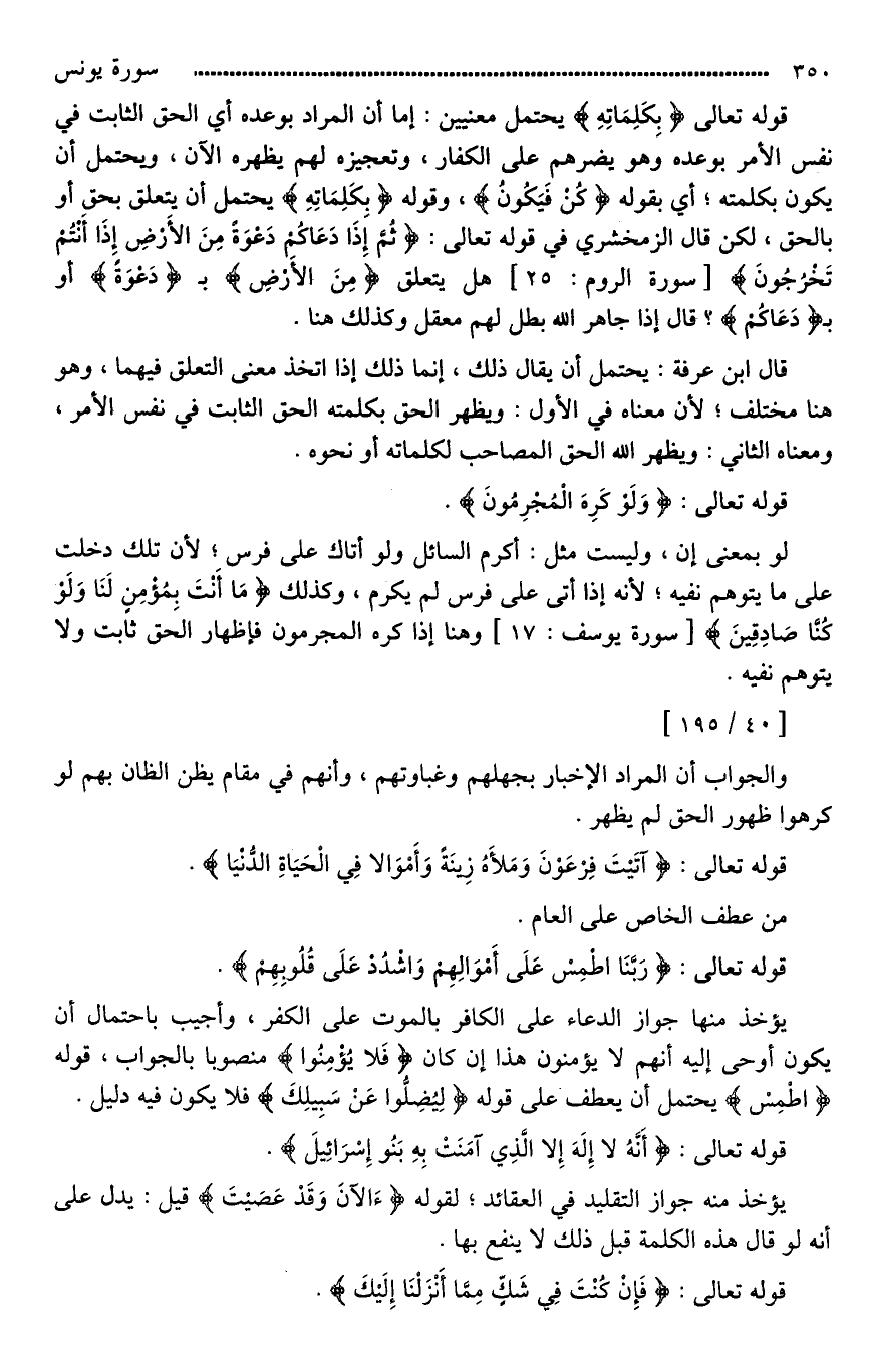 قوله تعالى (بِكَلِمَاتِهِ) يحتمل معنيين: إما أن المراد بوعده أي الحق الثابت في نفس الأمر بوعده وهو يضرهم على الكفار، وتعجيزه لهم يظهره الآن، ويحتمل أن يكون بكلمته؛ أي بقوله (كُنْ فَيَكُونُ)، وقوله (بِكَلِمَاتِهِ) يحتمل أن يتعلق بحق أو بالحق، لكن قال الزمخشري في قوله تعالى: (ثُمَّ إِذَا دَعَاكُمْ دَعْوَةً مِنَ الْأَرْضِ إِذَا أَنْتُمْ تَخْرُجُونَ) هل يتعلق (مِنَ الْأَرْضِ) بـ (دَعْوَةً) أو بـ (دَعَاكُمْ)؟ قال [إذا جاء نهر الله*] بطل [نهر*] معقل، وكذلك هنا.